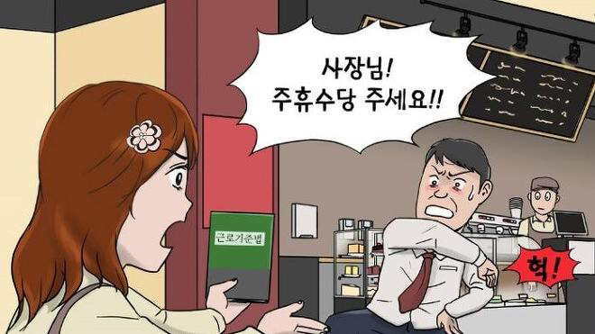 주휴 수당이란 1주 동안 규정된 근무일수를 다 채운 근로자에게 1일의 유급 주휴일을 주는 것이다. 그렇기 때문에 일주일에 40시간씩, 한 달에 160여 시간 일하는 정규직 노동자의 근로계약서에서 기준 근로시간이 209시간이 된다. 이는 어떠한 근로 형태(아르바이트, 계약직, 정직원 등)를 막론하고 주당 15시간 이상 일하는 사람이 1주 동안 규정된 근무일을 만근하면 받아야 하는 것이다. 주휴수당은 계산법에 따라 산정되어야 하며, 현재 최저시급인 6,030원을 기준으로 약 1200원 정도가 주휴수당이 된다. 그렇기 때문에 일주일에 15시간 이상 일하면서 시급이 7000원 이하인 곳은 대부분 최저 임금 미달로 주고 있다는 것인데... 알바천국만 검색해도 이런 곳은 너무나 많다.