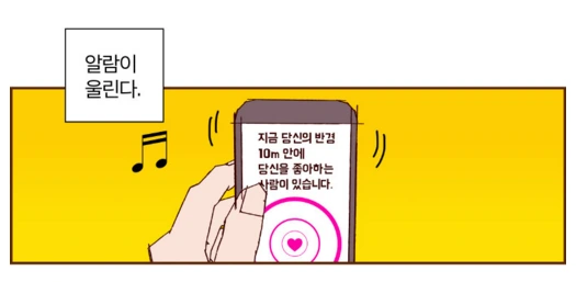 기능은 아주 단순하지만 어마무시한데, 바로 10m 반경 안에 자신을 좋아하는 사람이 있으면 그걸 알려준다. 반대로 말하자면, 내가 좋아하는 사람의 10m 반경 안에 있으면 그 사람의 좋알람이 울리게 된다.