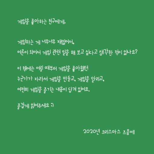 인터뷰집 <아니, 제 남편이 게임중독이라고요?>를 선물합니다.