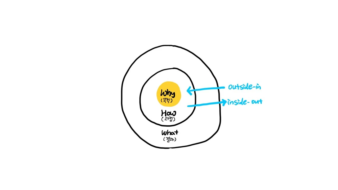 * 골든서클 (Golden Circle) : 사이먼 시넥이 TED 강연 <위대한 리더들이 행동을 이끌어내는 법>과 책 <나는 왜 이 일을 하는가>에서 소개한 개념인데요. 간단하게 요약하자면, 사람들은 물질적인 결과물(What)이 아니라 신념과 목적(Why)에 더욱 열광하기 때문에 사람들의 마음을 움직이게 하려면 [Why-How-What]의 순서로 접근하고 커뮤니케이션을 해야 한다는 것입니다.