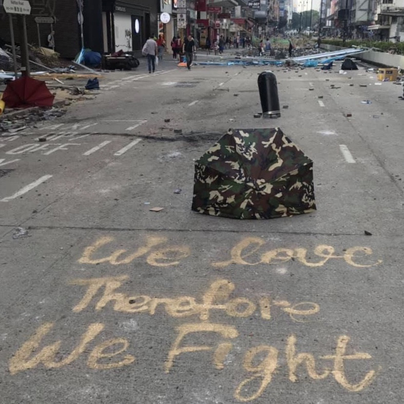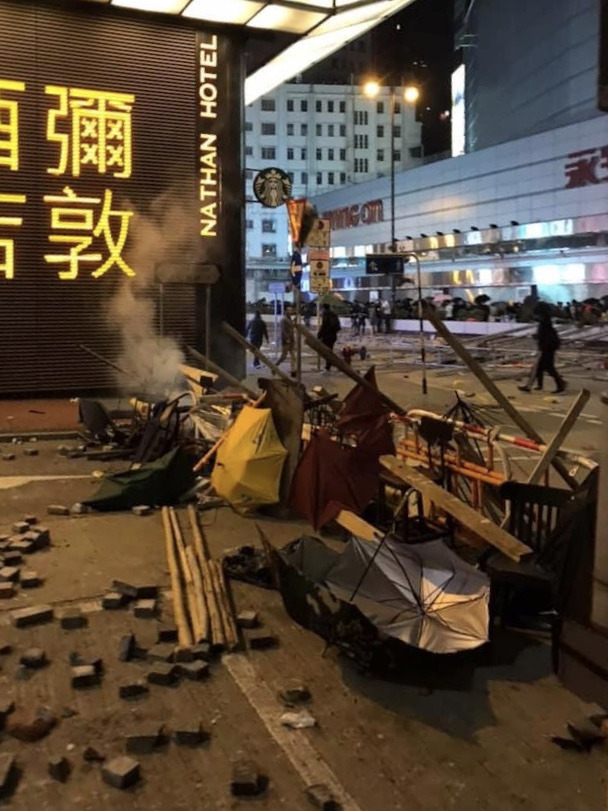 일요일 정오에 도착한 홍콩의 모습은 이전과는 달리 한산했지만 그래도 평온했다. 골목의 국수 가게는 늘 그렇듯 완탕면과 밀크티를 팔고 있었고 제법 관광객들도 보였다. 어느덧 저녁이 되었고, 우리가 묵던 곳은 시위의 거점인 폴리텍 대학교로 가는 길목이어서 우리는 시위대의 모습을 바로 내려다볼 수 있었다. 낮에 평화로웠던 도로는 금세 검은 옷을 입은 시민들로 가득 찼고, 얼마 지나지 않아 경찰차와 물대포차가 빠른 속도로 시민들을 향해 달려왔다. 시위대는 좁은 골목으로 급히 피해 들어갔고 대기는 순식간에 최류가스로 뒤덮였다.