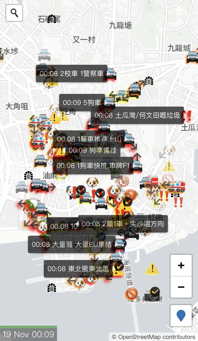 짧은 시간 홍콩과 그 주변의 도시들에 머무르며, 홍콩 시위의 현장을 실시간으로 안내하는 웹 페이지를 수 없이 새로고침 했다. 지도는 시민들이 함께 실시간으로 업데이트하는 방식으로 운영되는데, 현재 경찰이 어디에 위치해 있는지, 경찰 병력은 얼마이고, 어디에서 최류가스가 터졌고, 무력진압으로 인한 폭력 사태가 발생했는지 알려준다. 우리가 홍콩에 머무르던 그날 밤의 지도는 바로 눈 앞의 현실과 교차되며 이상한 기시감을 만들어냈다. 그리고 상대적으로 평온한 나의 도시에 돌아와서도 이따금 그 지도를 다시 열어본다. 마치 홍콩과 나를 연결해주는 특별한 고리라도 되는 것처럼 지도를 들여다본다.