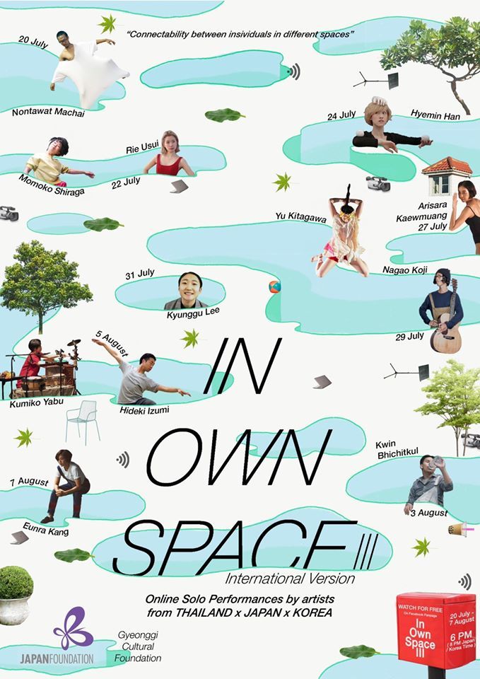 우리는 서로 다른 공간에서, 서로 다른 개인의 연결을 찾는다. 코로나19의 위기가 도래한 이후, 공연예술가들은 기존의 공간에서 작품을 창작하고 선보일 수 없었다. 이것은 예술가들 자신들뿐만 아니라 예술가들과 대중들의 단절을 가져왔다. 우리는 여전히 사회에 말 걸기를 원하지만, 이를 위한 플랫폼이나 공간을 빼앗기고 있다. 이에 고민을 시작했다. 사회로부터의 단절과 괴리를 막기 위해 우리는 이 시간 동안 무엇을 할 수 있을까? 이 논의는 IN OWN SPACE: 1의 시작으로 이어졌다. 이 프로젝트에는 태국의 예술가 15명이 참여했고, 이어진 IN OWN SPACE: 2에는 태국의 예술 전공 대학생들이 참여했다. 이번에 진행되는 내 자리에서 IN OWN SPACE: 3은 그 만남의 대상을 한국과 일본으로 확장하며, 국제교류와 협력의 새로운 방식을 실험한다. 각 개별 공연은 최종적으로 22분 분량의 한 영상으로 편집된다. 프로젝트의 참여하는 아티스트들은 서로의 공연으로부터 어떤 영감을 받고, 자신의 차례에 이야기를 이어간다. / 기획: Arisara Keawmuang, Kwin Bhichitkul