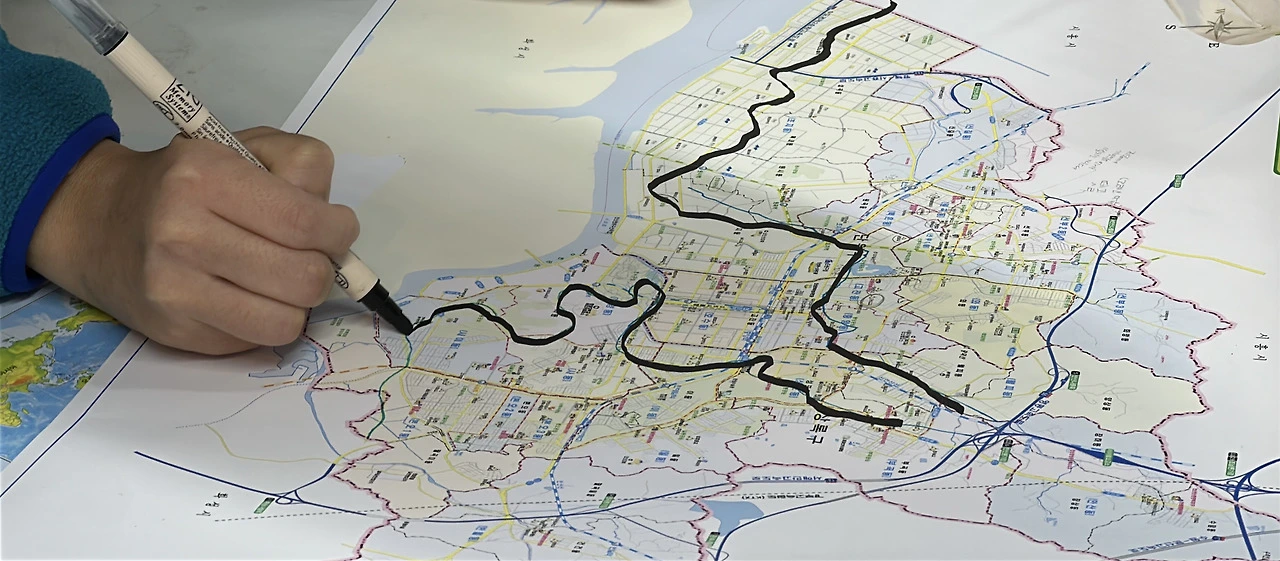 '빨간 실로 무언가를 엮어냈으면 좋겠다, 작은 손노동을 이어가며 이야기가 들려졌으면 좋겠다, 도시의 역사와 우리, 그리고 이웃의 미시사가 연결되어 있다는 점이 보였으면 좋겠다, 대규모 간척부터 산업지구의 형성까지 이 도시가 지닌 서사가 지금의 현실과 어떻게 연결되었는지 지도처럼 펼쳐졌으면 좋겠다' 우리가 바라고 상상하는 그림이 조금씩 구체화되었다.