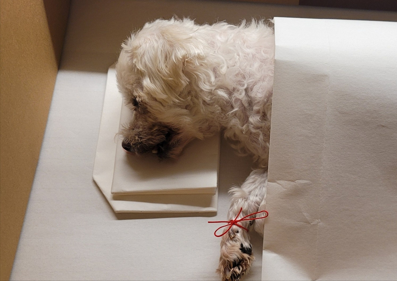 쫑이는 피곤했는지 엎드려 편안히 잠든 모습으로 떠났다.