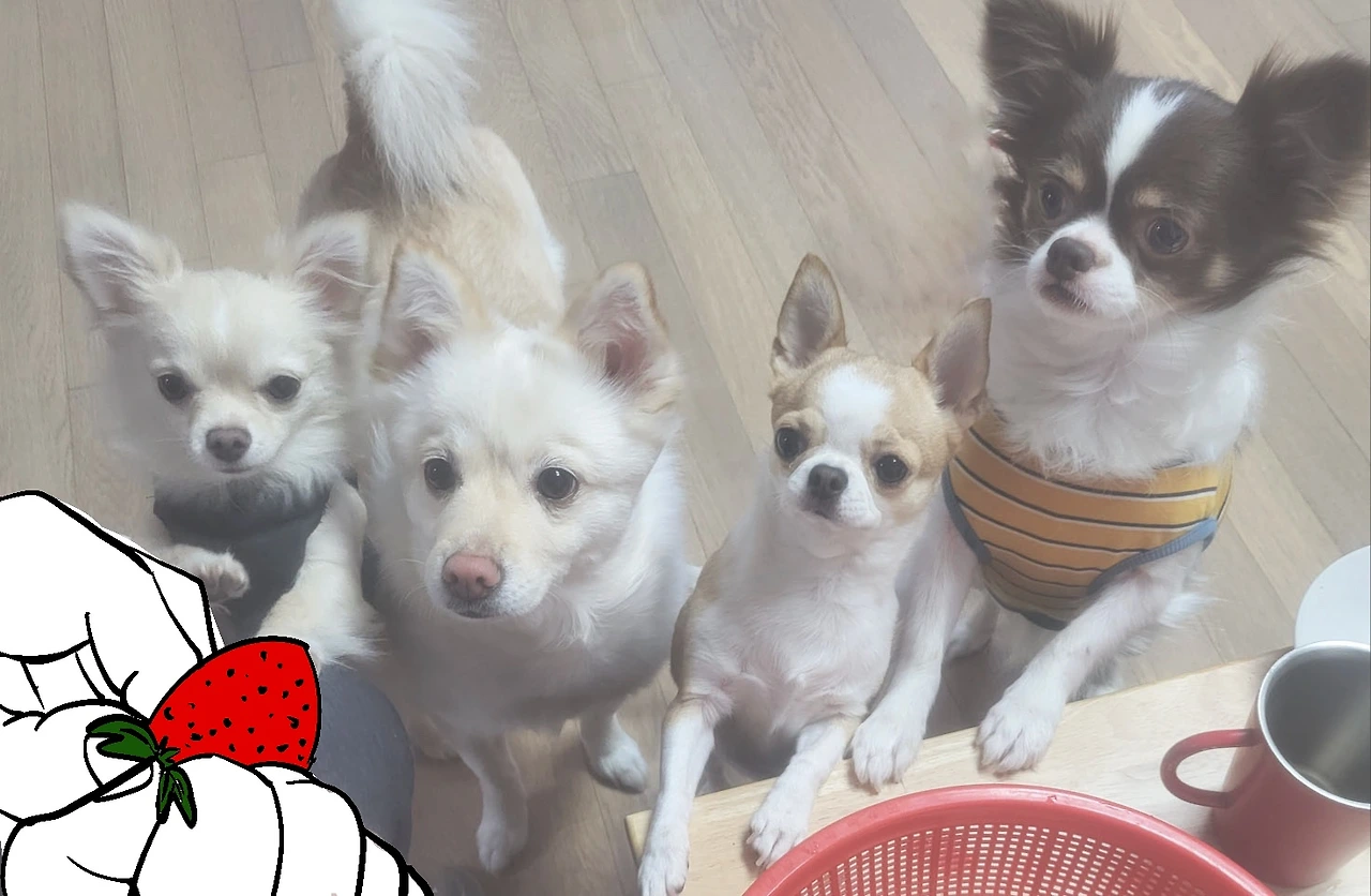 달달한 딸기냄새는 강쥐들도 아는 맛이라고 난리다.