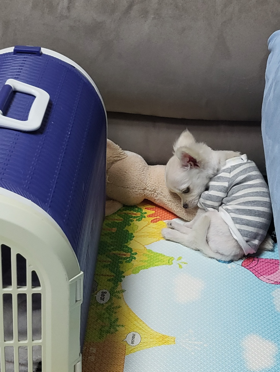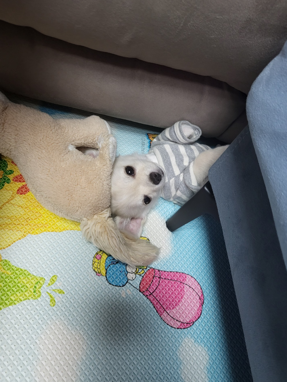 배변패드 한 장만으로도 행복하게 놀았던 모습은 순수 그 자체였다.