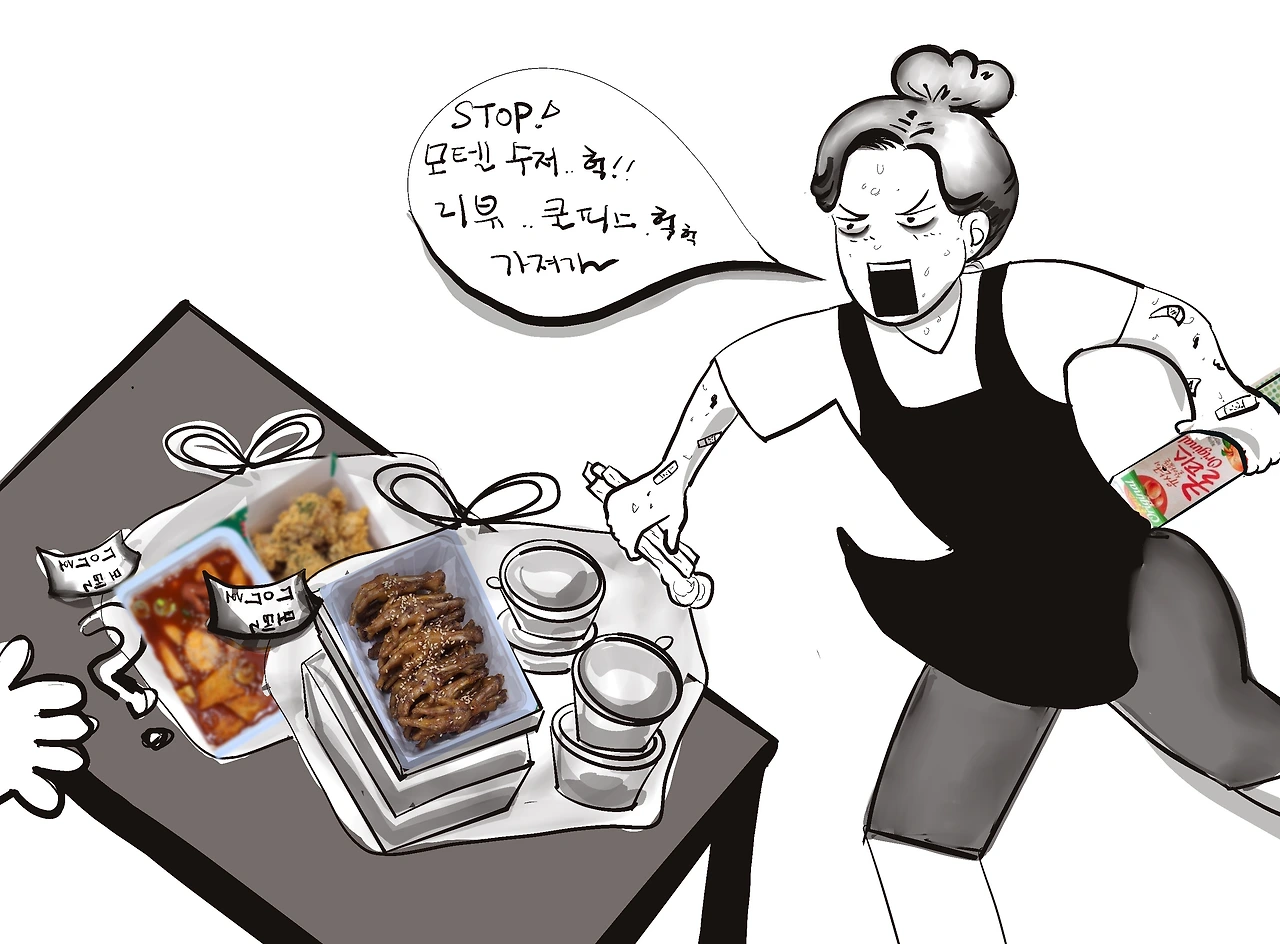 초저녁이라 식사대용으로 큰 손들의 주문이 한꺼번에 대량으로 들어왔다. 보통 2~3만 원을 넘지 않는데, 오만 원을 넘는 주문이 많다. 닭발세트에 치킨과 국물떡볶이가 계속 주문이 들어온다. 모처럼 모인 친지들이 어른들은 닭발로 술안주를, 애들은 치킨과 떡볶이로 현명한 선택을 많이 하는 모양이다. 쏟아지는 주문에 지콩과 빙구는 주방을, 놀부는 배달을, 영숙은 주문과 포장을 자연스럽게 전담하며, 각자의 맡은 일에 미친 듯이 바빴다.