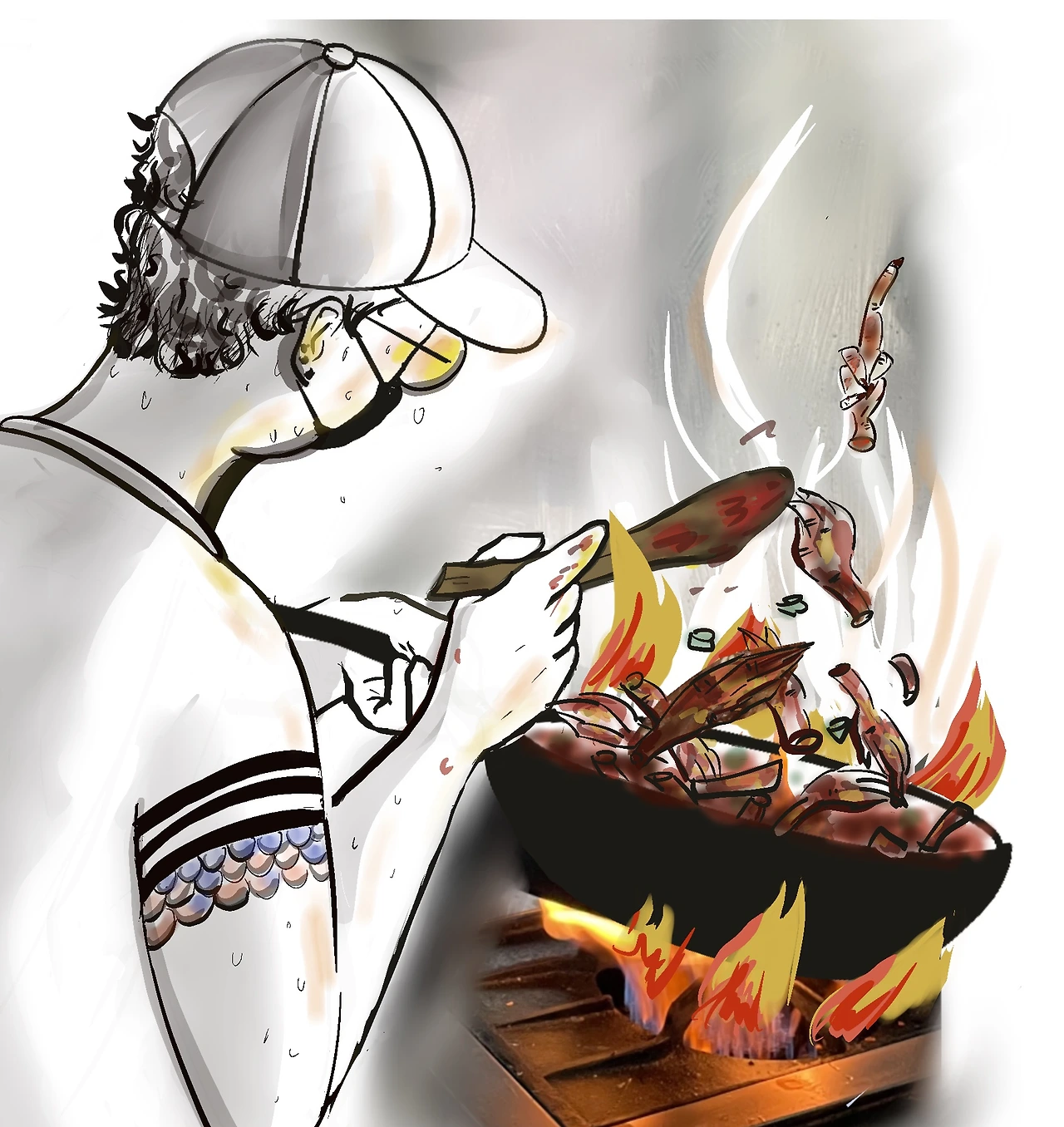 늘 모자란 웃음을 짓던 빙구도 웃음조차 잃어버린 채 몇 시간째 주구장창 닭만 튀기다가, 결국 엄지손가락 하나도 튀겨 놓고 아프단 말도 없이 묵묵하게 튀기고, 또 튀겼다.