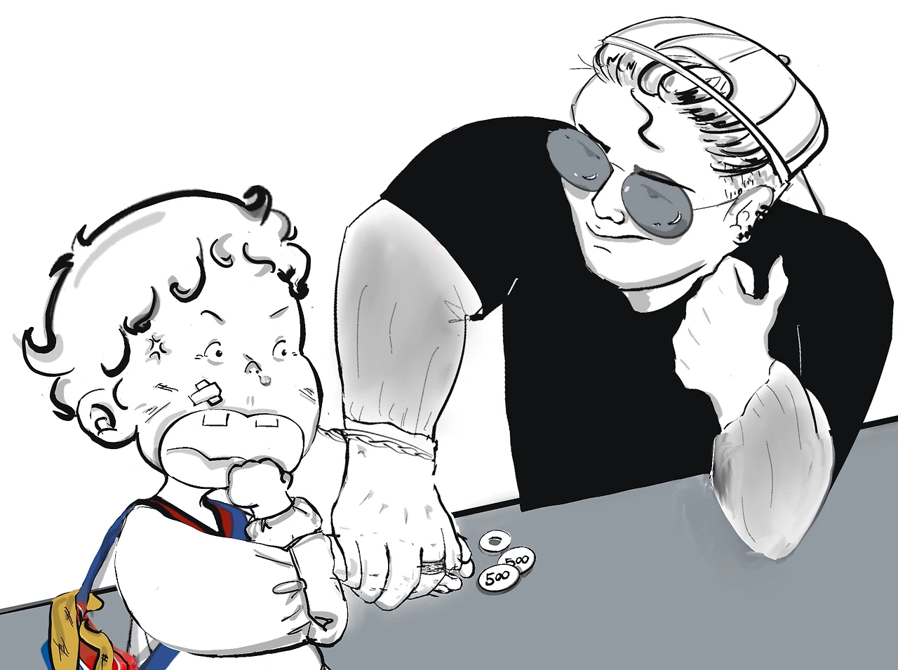너 또 동전 사이에 가짜 동전 끼워서 낼래?
