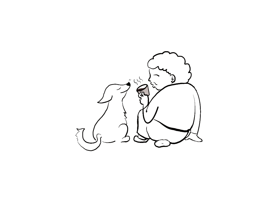 믹스커피를 좋아하는 외할머니가 휘휘 저은 티스푼에 남아있는 달달한 커피의 맛이라도 보려고 딱 붙어있는 멍이와 그게 싫지 않은 할머니는 우리 몰래 가끔 커피를 주고받은 모양인 것 같다.
