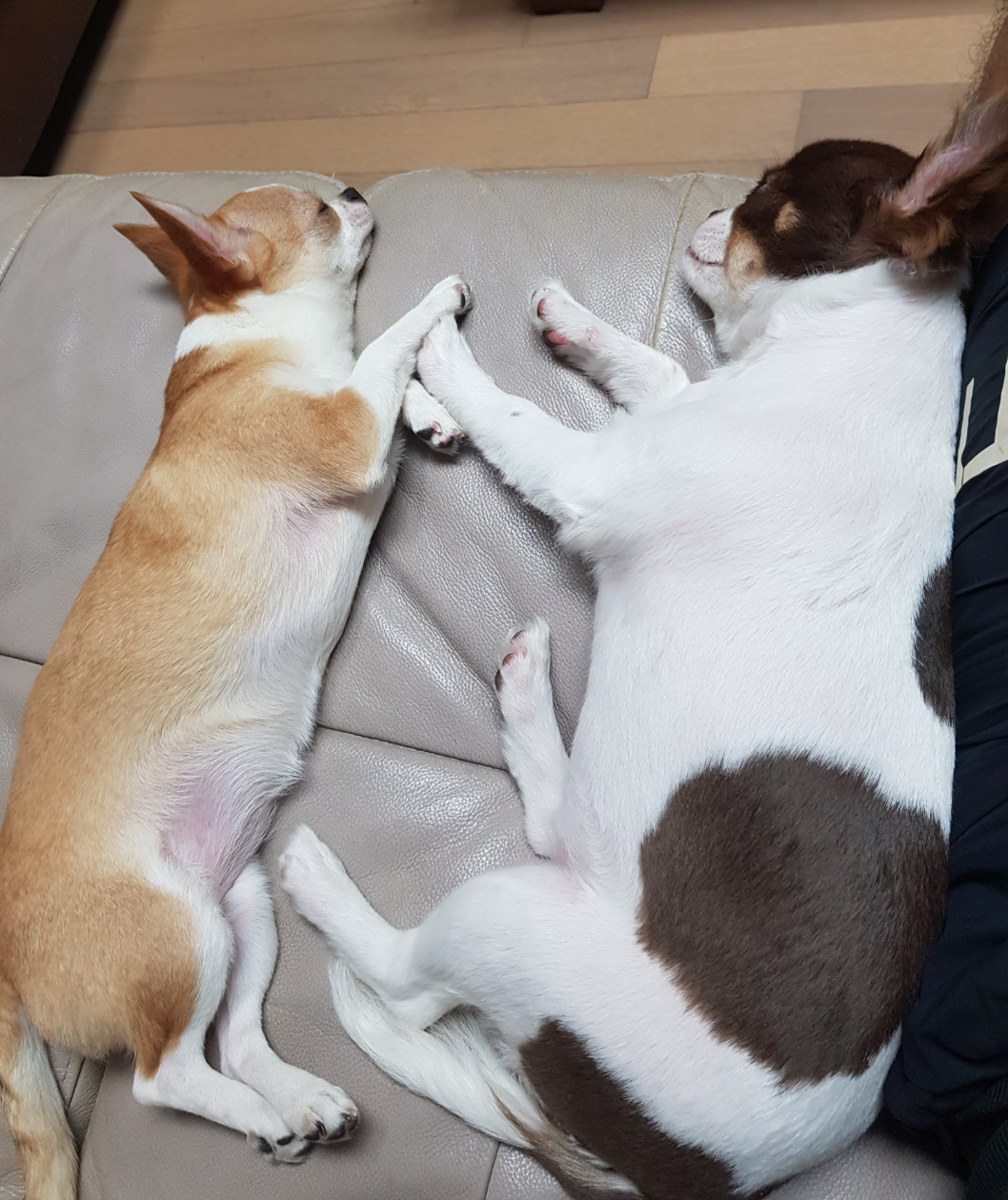 현재 잠시 위탁 중인 세 마리의 치와와가 언젠가는 제 집으로 가야겠지만, 쪼꼬는 여기 뚱마 곁에 남겨야 할 것 같다.