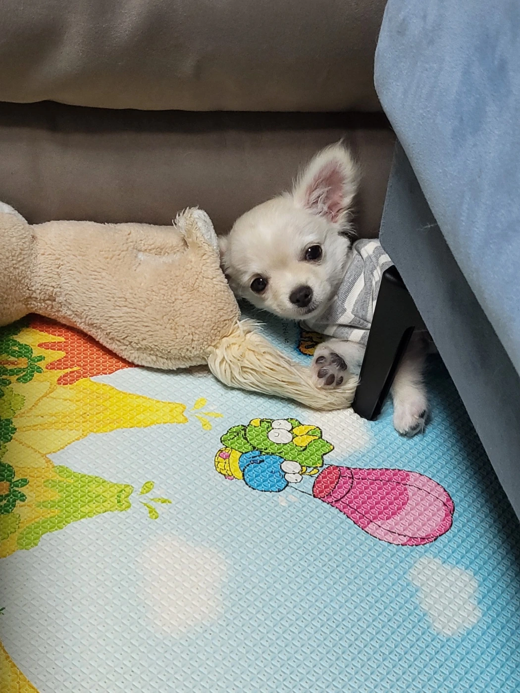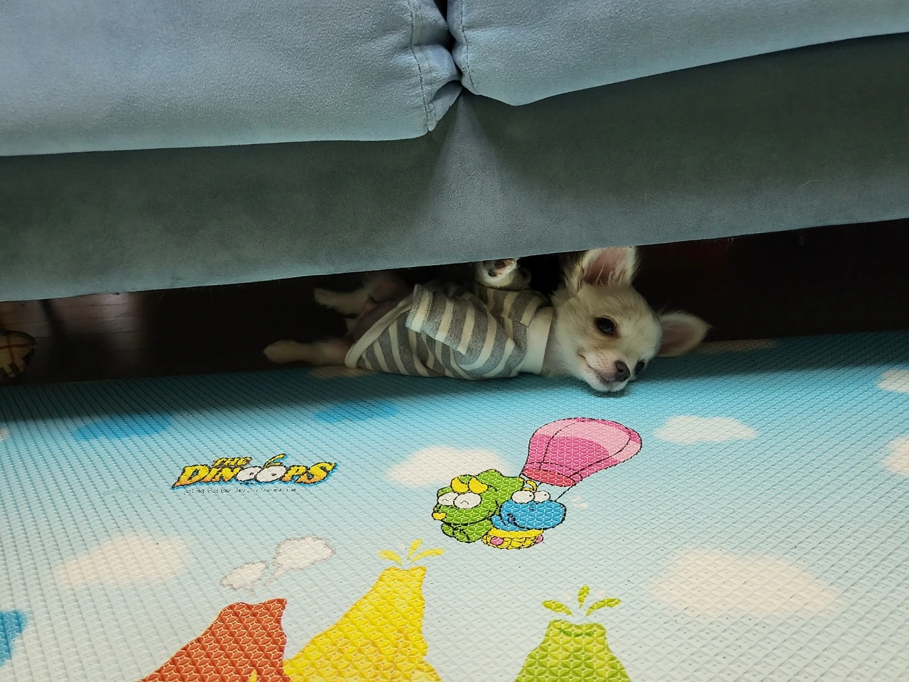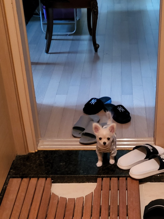 처음 우리 집에 왔을 때, 낯설어서 그런지 구석 어딘가에 몸을 끼워 넣고 있는 걸 좋아했던 쫑이가 안 보이면 찾으러 다녀야만 했었다.