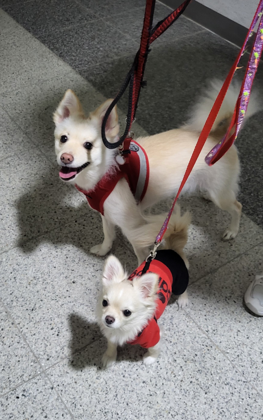2차로 산책을 나간 멍이와 쫑이는 기분 좋게 찬바람 맞으며 겨울밤 산책을 즐겼다.