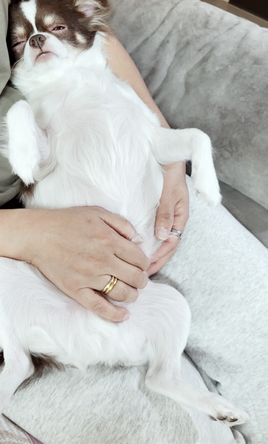 회식도 3차는 버거운 나이의 뚱마가 퇴근 후 특식을 해 먹이고, 연속 산책은 무리였었는데, 때마침 졸고 있는 쪼꼬를 아기처럼 안고 쓰담쓰담해 줬더니,뚱마 품에서 스르륵 잠들어준다.