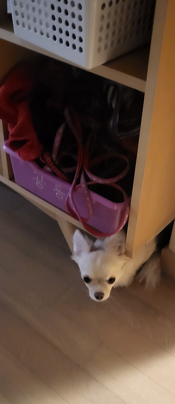 뚱마가 개무시 하자, 개끈 통 옆에서 묶어 달라고 애원을 한다.