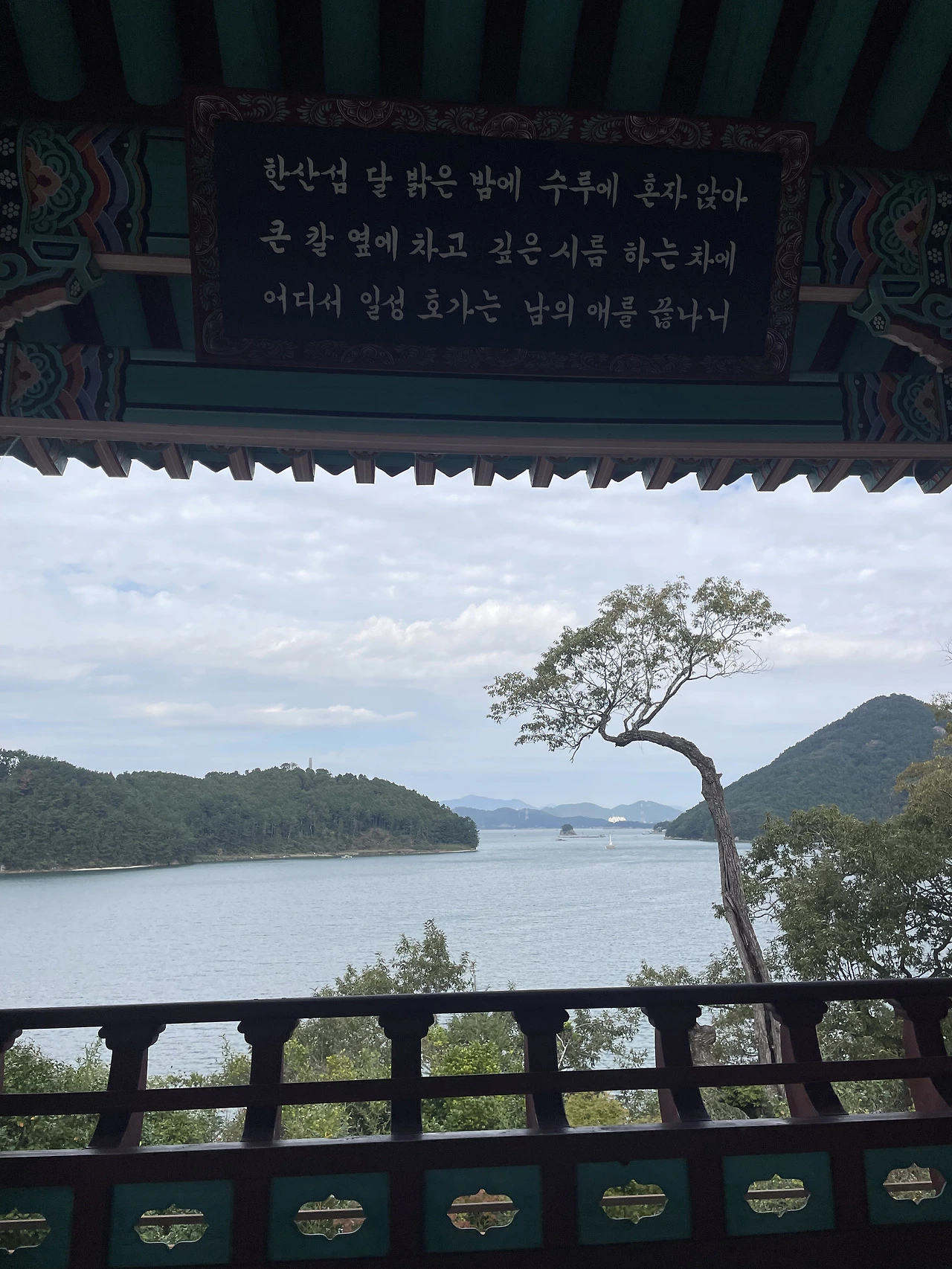 한산섬 수루에 기대서서 눈앞의 바다 바라보니