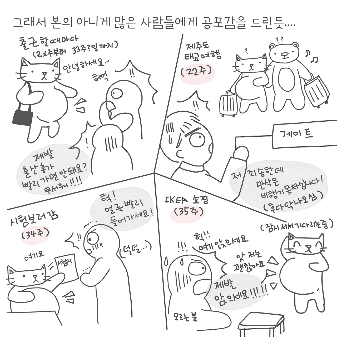 나는 뭐 32주? 까지는 그냥 전철을 타고 다녔는데, 일부러 사람들이 자리양보 압박을 느끼지 않게 항상 출구 앞에 서 있었다.(사실 앉고 일어나는 동작이 더 힘들기도 하고, 앉아서도 배가 커서 옆사람과 부딪히기 때문에 ㅠㅠ) 그랬는데도 자리에 앉으신 분들이 내 배를 보면 꽤 좌불안석의 표정이었던 것 같다 ^^; 33주까지 회사 나갔었는데, 마지막 주에는 그냥 택시를 타고 다녔다!