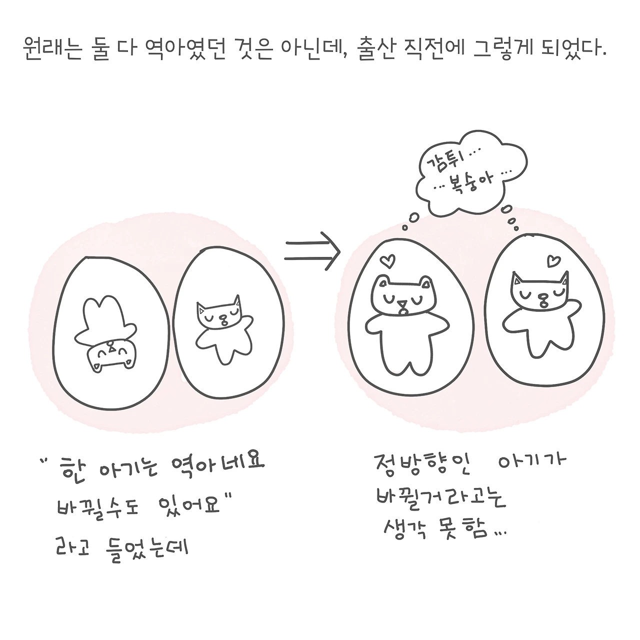 33주 까지 근무하고, 출산 휴가를 미리 써서 집에서 쉬었다. 쌍둥이의 출산휴가는 단태아의 90일이 아닌 120일이기 때문에 출산휴가를 좀 당겨서 쓰는 부분에는 더 여유가 있었던 것 같다. (물론 출산휴가를 길게 쓸 수 있다고 육아휴직까지 더 길게 쓸 수는 없었음…) 제가 난임 병원 졸업 후에 대학병원으로 전원한 것은, 쌍둥이를 자연 분만해보고 싶다는 의지가 있어서였는데, 결과적으로는 아기들이 둘 다 역아라서 할 수는 없었다. 이게 모든 조건이 잘 맞아야 할 수 있는 것인지 단순히 엄마의 생각으로만 되는 것은 아니더라는... 아무리 고양이 자세 등 역아 위치 전환에 도움이 된다는 동작을 많이 해보아도 태동만 격해질 뿐(싫어하는 것 같았음) 돌아오지는 않았다.