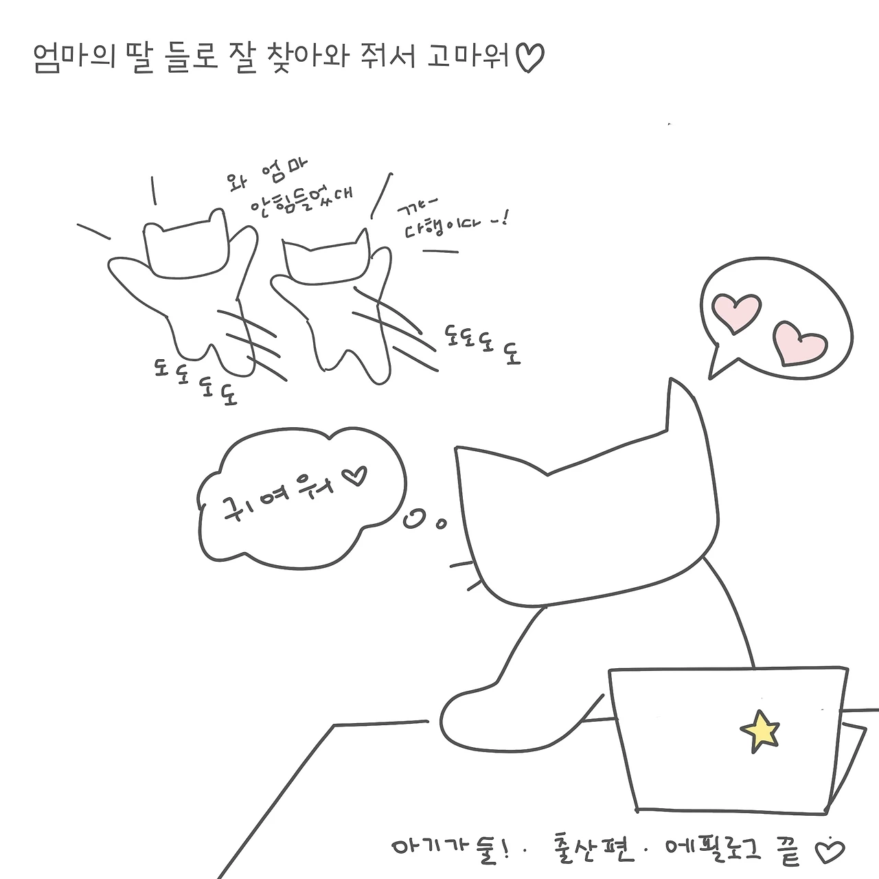 인스타에서 5월 중순에 시작하여 한 달 반 좀 안되게 15편으로 출산 편을 마무리했다. 절대 일기를 안 쓰는 타입이라 기억을 부분 부분 되살리기 위해 사진도 찾아보고 하면서 재밌게 그려보았는데, 다시 그때의 기분이 생각나서 재밌고 즐거웠다!