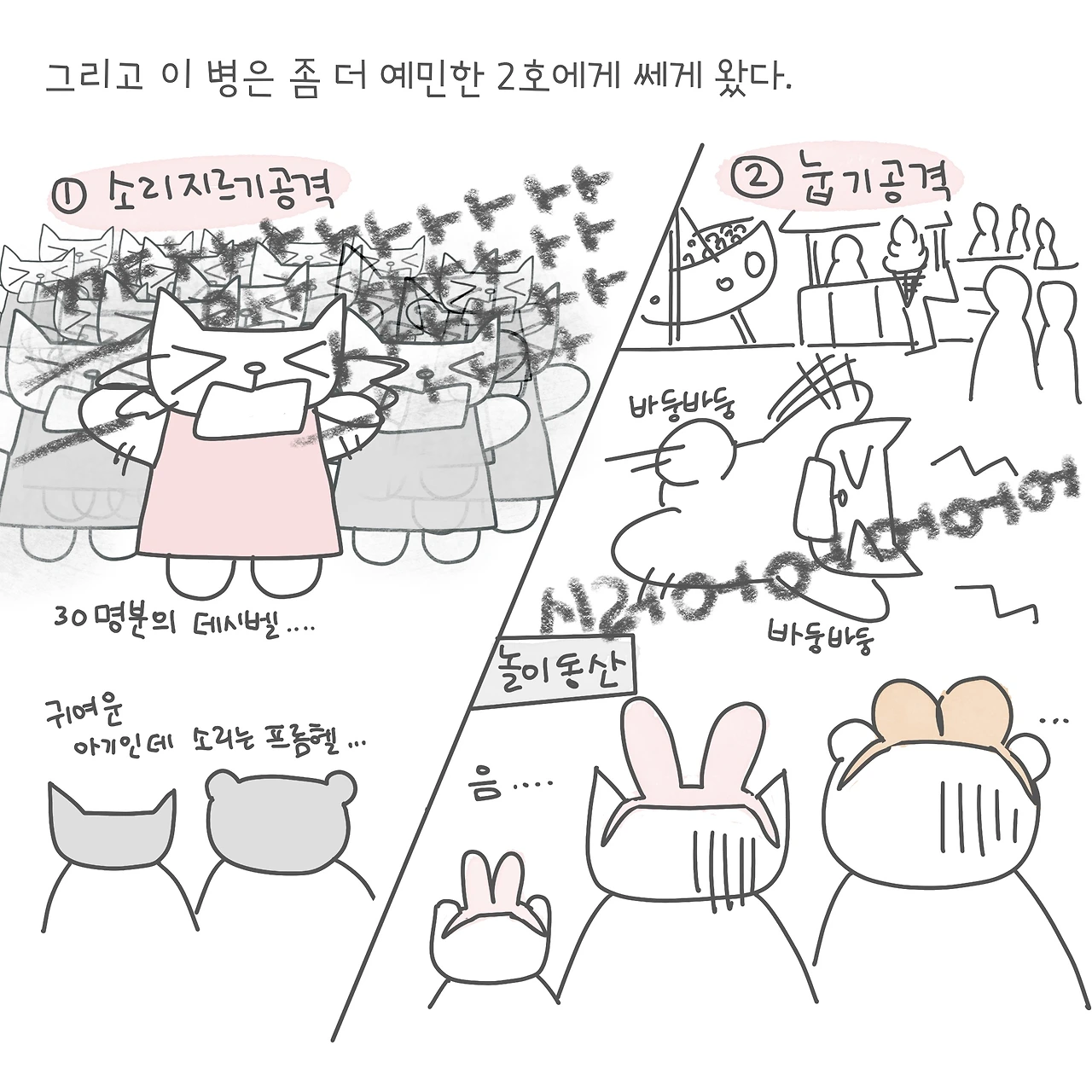 2호는 싫은 것은 정말 싫은 어린이인 것 같다. (누구 닮았나 생각해 보았을 때, 남편과 나는 서로 모르겠다고 했지만 마음속 깊은 곳에서는 나를 닮았다는 것을 알고 있었다^^) 게다가 목소리도 엄청 크다. 지금은 그래도 많이 사회화가 되어서 공공장소에서 소리를 크게 지르는 일은 없지만, 아직 규칙을 배우고 있던 4살 때쯤에는 아무데서나 Max 데시벨로 소리를 질렀었다. 물론 우리도 지지 않는 부모이기 때문에, 소리를 지르면 바로 데리고 나가서 어디 구석에 가서 소리 지르는 건 잘못된 것이란 걸 알려줬는데, 그러면 아이는 더 크게 울고 소리 지르고 그래서 정말 그때는 이래저래 어려운 시기였던 것 같다.