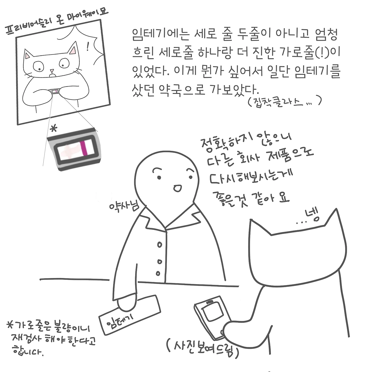 가로줄이 나왔다면 꼭 다시 해 봐야 하고 너무 기대하면 실망이 클 것 같다. 사실 나보다 아기를 더 오래 기다리는 분들도 많다는 것은 당연히 알지만, 워낙 좀 급한 성격이다 보니 너무 답답함이 있었다. 이걸 언제까지 기다려야 하는지는 그 때는 아무도 아는사람이 없었기 때문이다. (당장 눈앞에 내 아기가 있었으면 했다.)