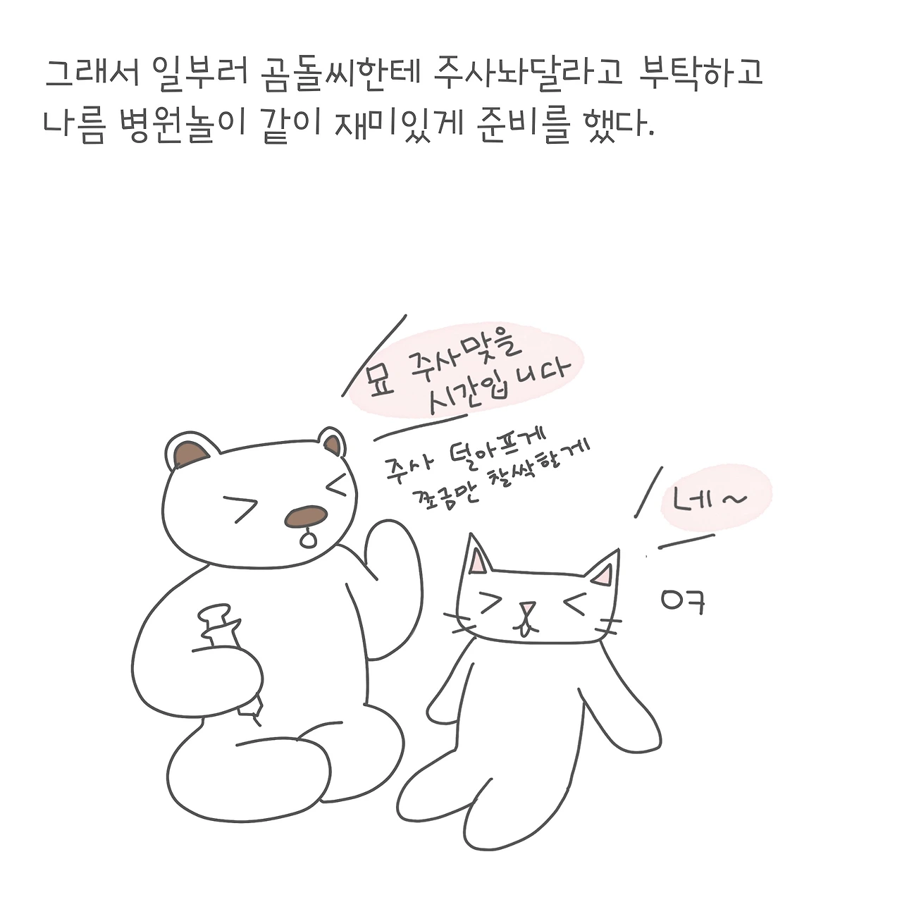내 몸에 뾰족한 바늘로 직접 주사를 놓는 일은 쉽지는 않았다. 하지만 다행히 워낙 배에 지방이 충분한(?) 타입이라서 바늘이 들어갈 자리는 워낙 많았던 것 같다! 특히 남편이 안 아프게 주사를 놓는다고 엄청 찰싹찰싹했었는데, 덕분에 주사는 안 아팠지만 주사를 맞고도 계속 얼얼함이 있었다. 정말 내가 안 아팠으면 하는 마음에 그랬다고 한다. 어쨌든 덕분에 혼자 쓸쓸하게 자가주사하는 것은 그만했고, 나름 재미있게 병원 놀이하며 아기를 기다렸었다.