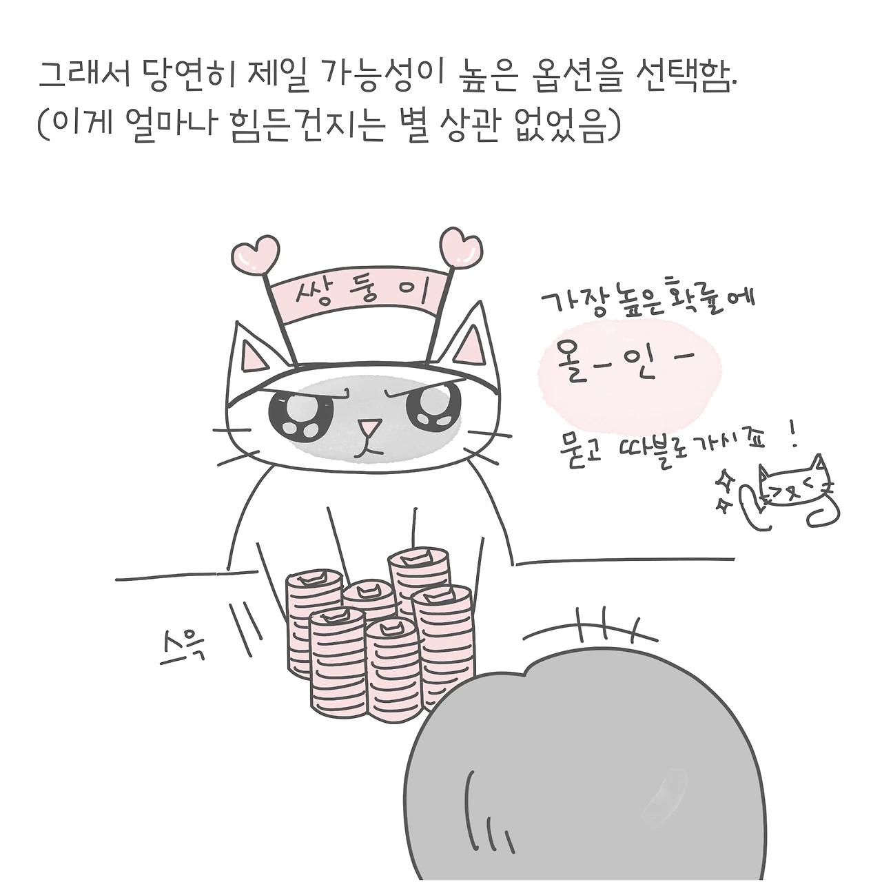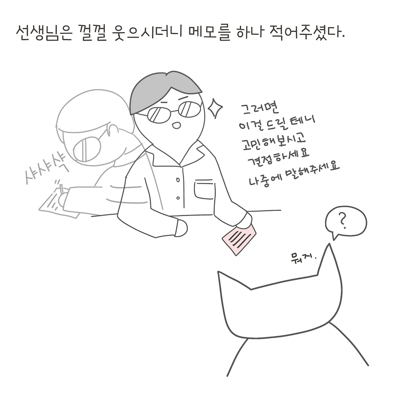 나는 여러 가지 옵션들 중 가장 어떻게 보면 나한테 고생스러운 옵션을 택했는데, 일단 쌍둥이 확률이 높은 것도 하나의 이유였지만, 다른 이유는 만약 다른 옵션(덜 무리 가는 하지만 확률은 좀 더 낮은)을 택해서 혹시라도 임신이 안 된다면 나 스스로에게 굉장히 실망하고, 높은 확률의 선택지를 고르지 않은 것에 대해 자책할 것이 뻔했기 때문이다(스스로를 잘 알고 있음).