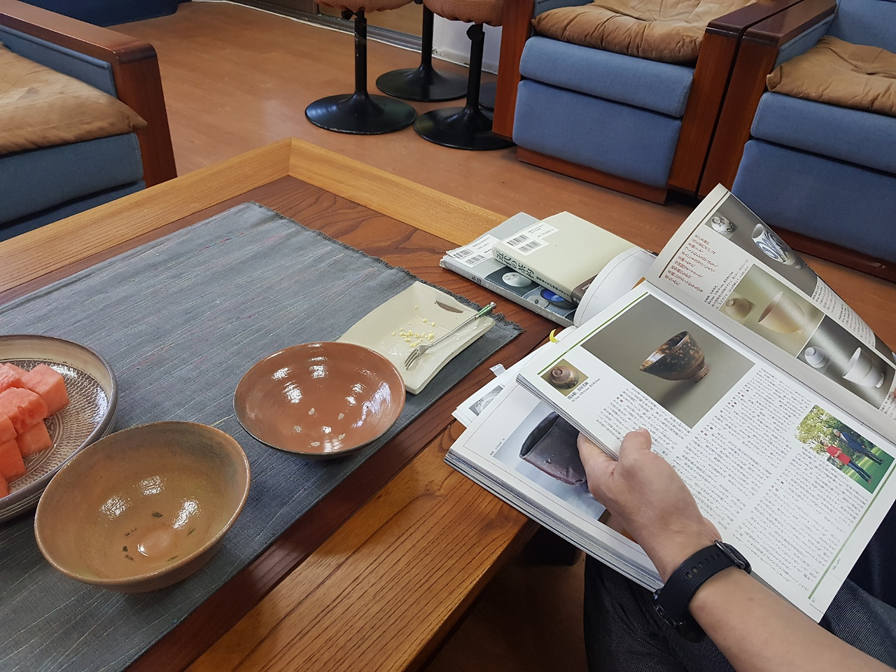 친절하게 일본에서 발간된 잡지를 통해 일본 국보인 이도다완도 보여주시고, 어떤 도자기가 좋은 것인지를 설명해주셨다. 특히 장인께서 직접 개발한 말끔한 도자기 유약에 대한 이야기는 흥미로웠다. 좋은 유약을 바르는 것이 온전한 도자기로 가는 길이란다.