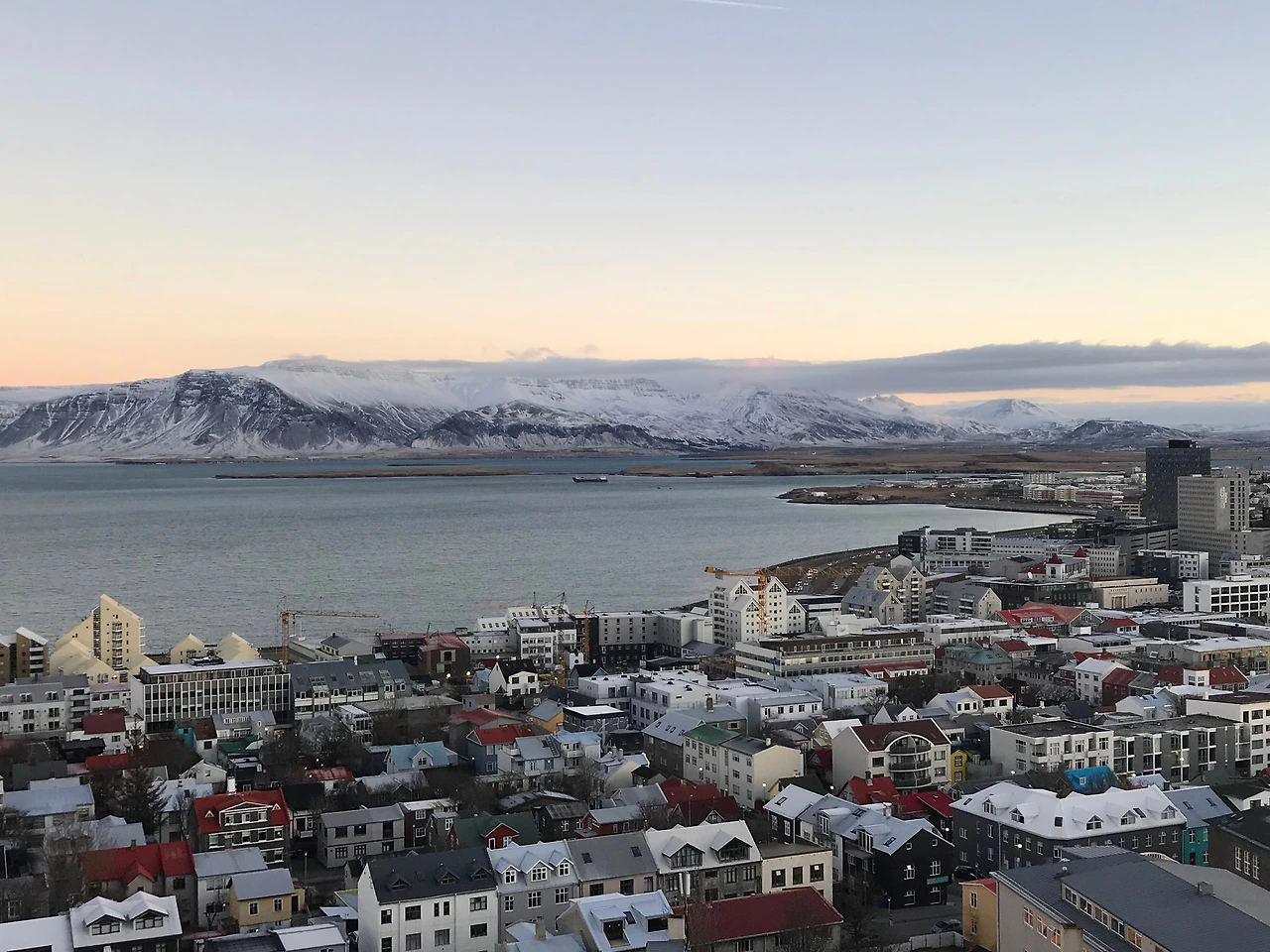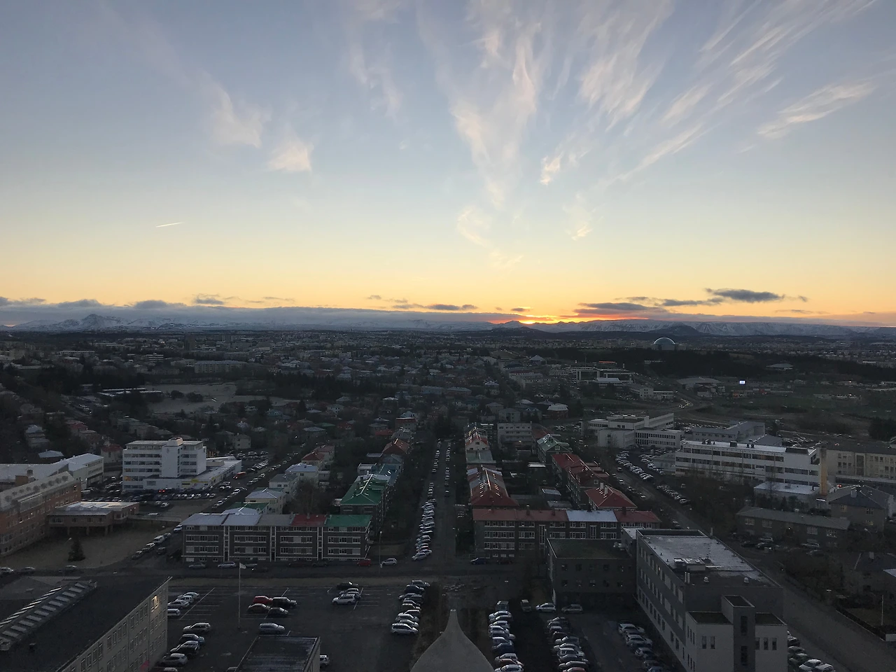 전망대는 종탑이 있는 공간이다. 나름 레이캬비크에서 가장 높은 곳 중 하나라 할 만하다. 사방을 둘러보니 레이캬비크 시내가 한눈에 들어온다. 다닥다닥 붙어 있는 주택가가 예쁘고 멀리 보이는 항구와 그 너머의 설산도 멋지다. 11시쯤 되자 서서히 해가 떠오르고 동쪽 주택가는 이내 해돋이로 물든다. 그러다 시간이 되니 종이 울린다. 멍하게 종탑 전망대에 있다가 갑자기 울린 종소리 때문에 <노트르담의 꼽추>의 콰지모도 될 뻔했다.