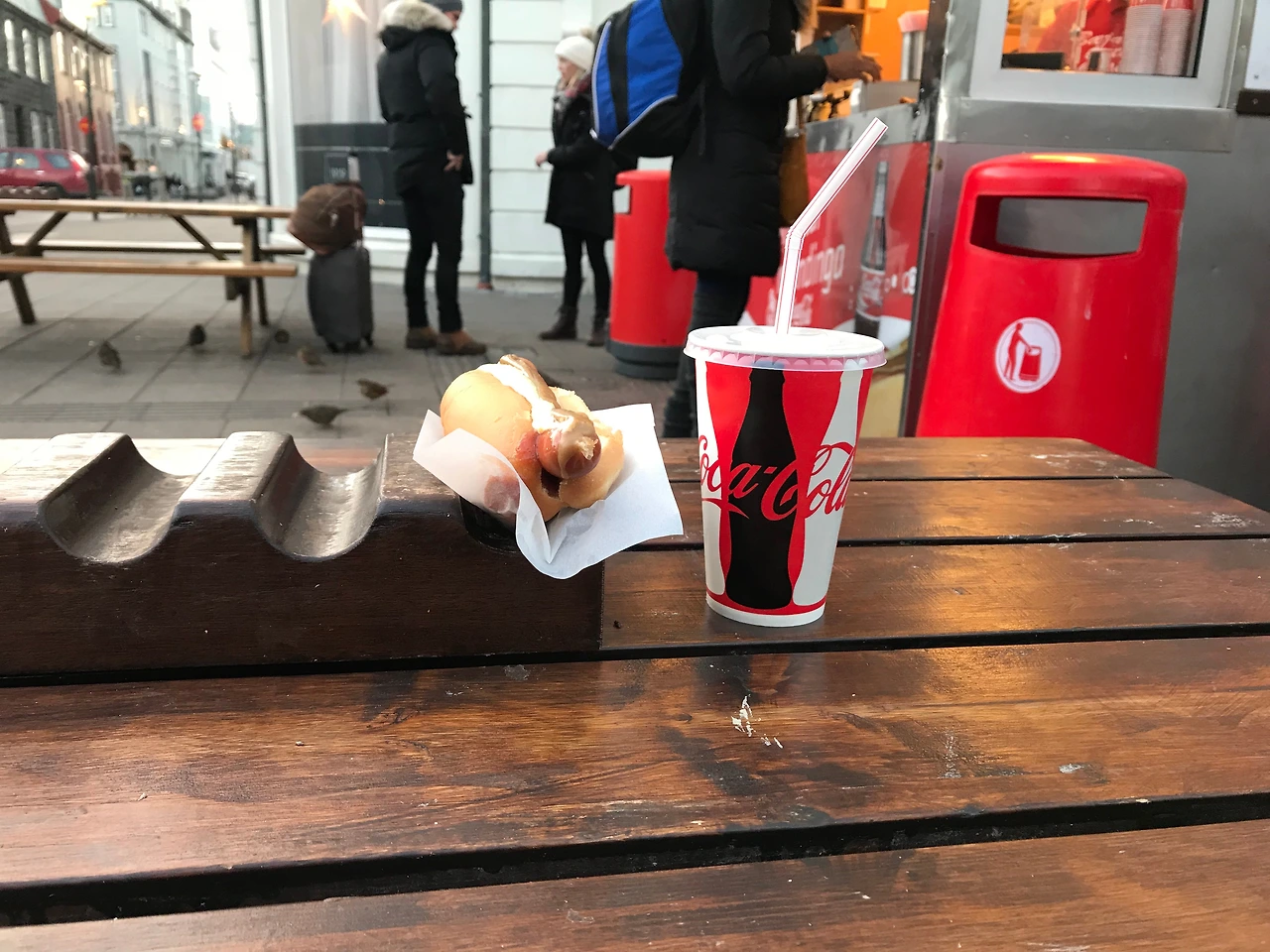 점심은 <꽃보다 청춘>에서 '핫도그 월드' 에피소드를 만들어낸 핫도그 가게에서 해결했다. 언제 가도 사람들이 많다고 해서 정확한 위치보다 근처까지 가서 줄 선 사람들을 찾아야지 했는데 막상 가보니 줄이 없었다. 동양인 여자 관광객 한 명만 있을 뿐. 핫도그와 스프라이트를 구입했는데 매장 앞에 야외 테이블이 있다. 이 추운데 야외에서 먹나 싶었는데 많은 사람들이 자연스럽게 야외 테이블에서 먹더라. 생각해보니 공원 벤치 같은 곳에서도 그냥 앉아서 책 보는 사람도 많았던듯?