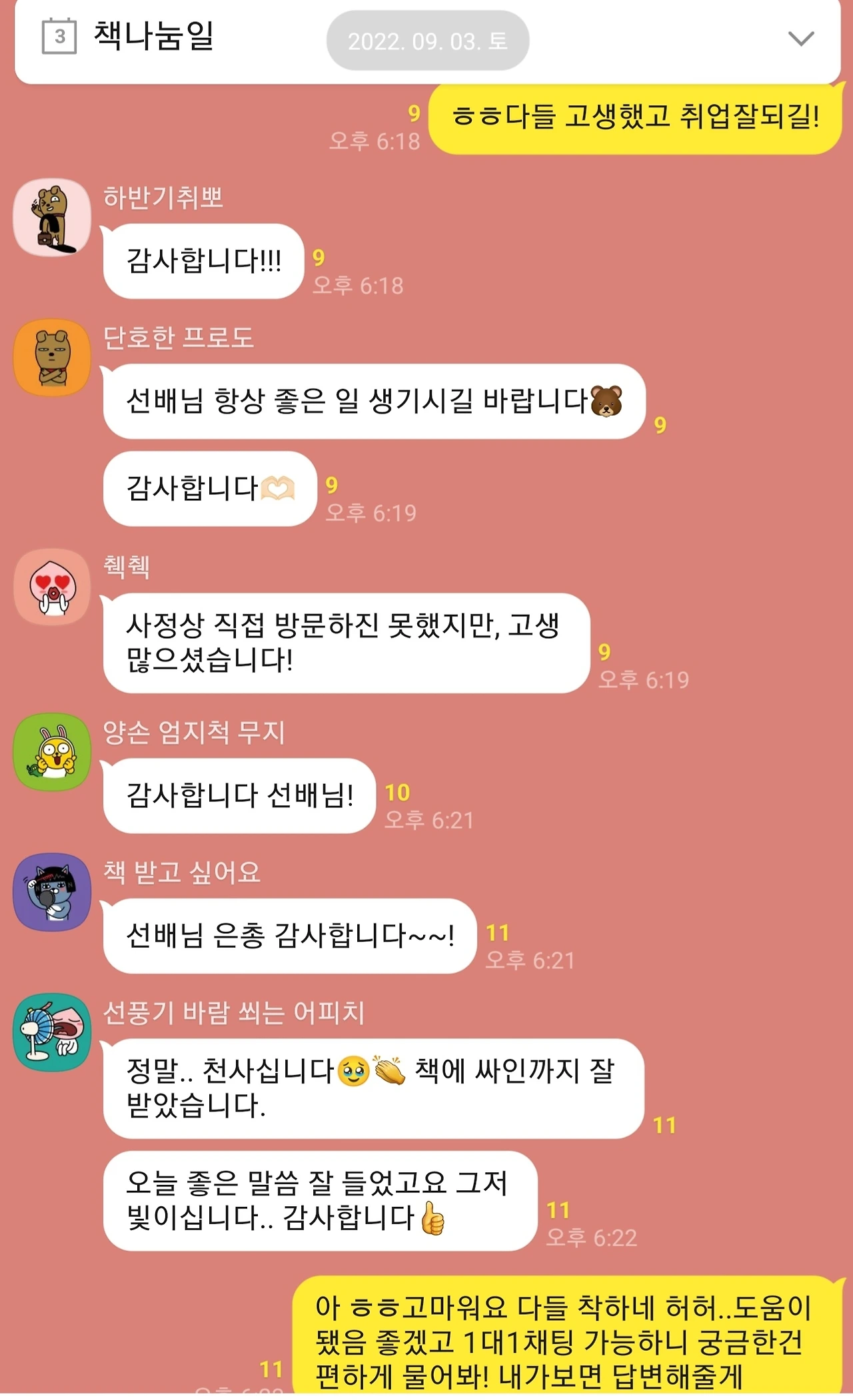 후배들이 감사하다고 하니 뿌듯하지만, 한편으로는 측은한 마음이 드는 1시간 30분이었습니다