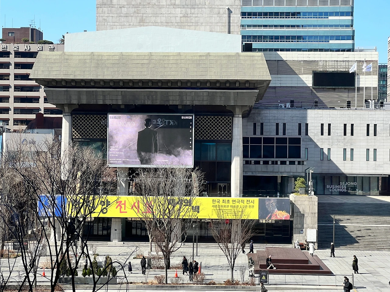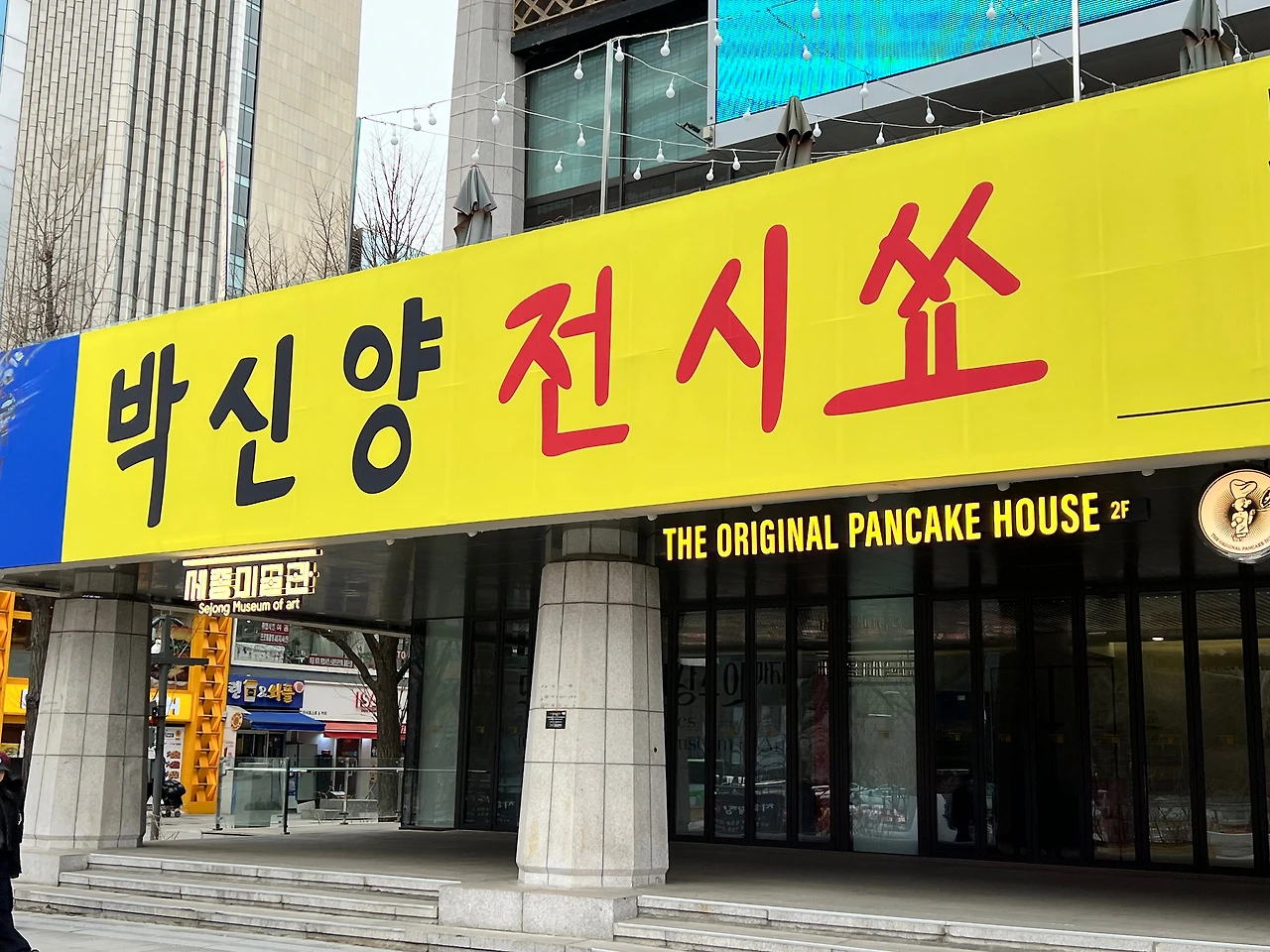 제가 이 전시를 봐야겠다 결심이 선 건 전시 현수막을 본 이후였어요. 전시 홍보가 포함된 콘텐츠에서 일부 작품을 봤는데, 확 끌리진 않았거든요. 그러다 전시장인 세종문화회관 미술관에 걸린 이 현수막을 보고 '이건 무조건 봐야겠다' 생각했죠. 모든 게 다듬어져 있는 광화문광장 일대에 광화문글판을 제외하고 유일한 손글씨 현수막이기도 하고, 이 정도 콘셉트와 자신감이면 전시가 시시하진 않겠다는 생각도 들었고요. 그리고 그 생각은 적중했습니다. 전시, 재밌습니다. '전시쑈' 맞아요!
