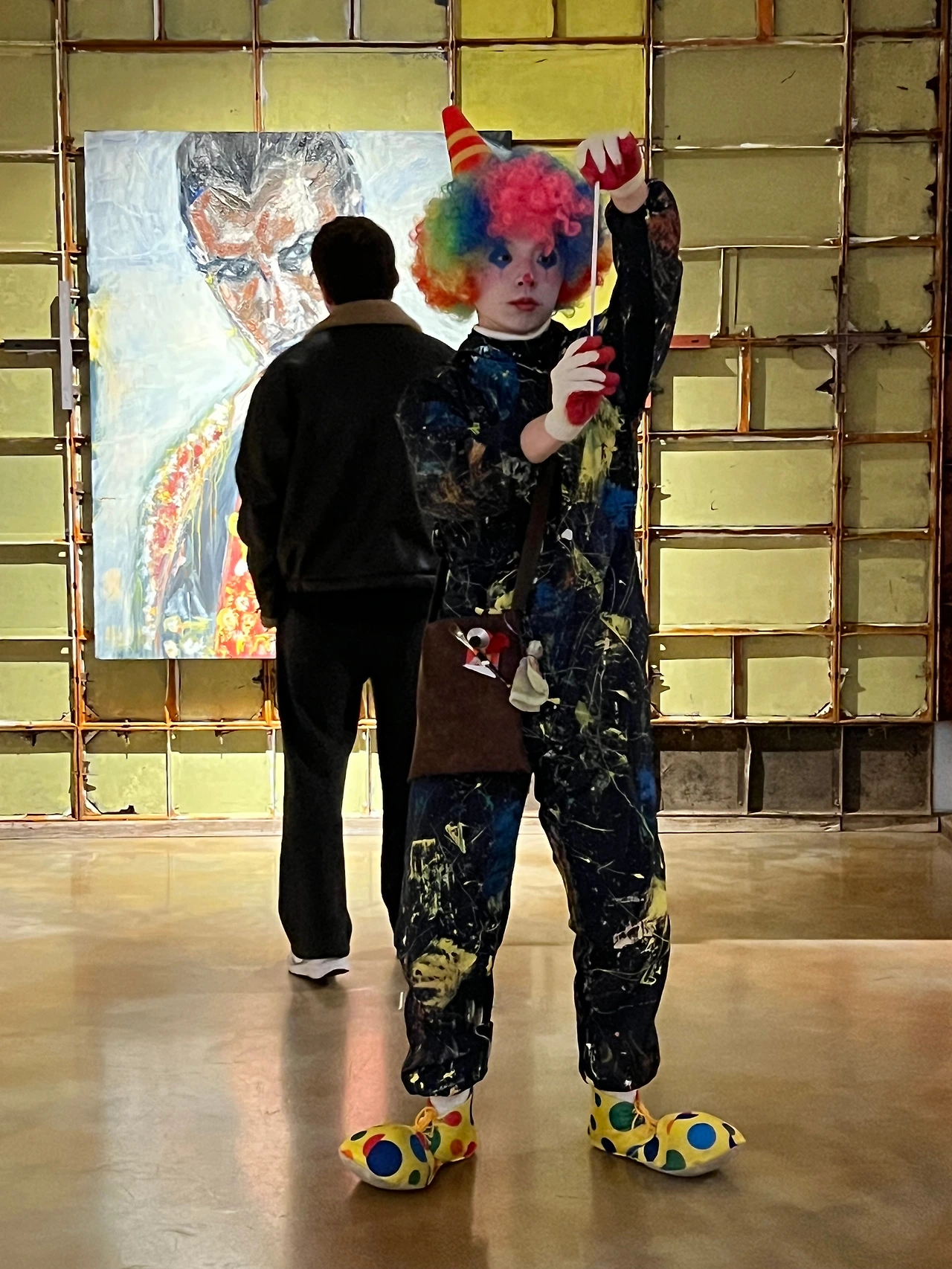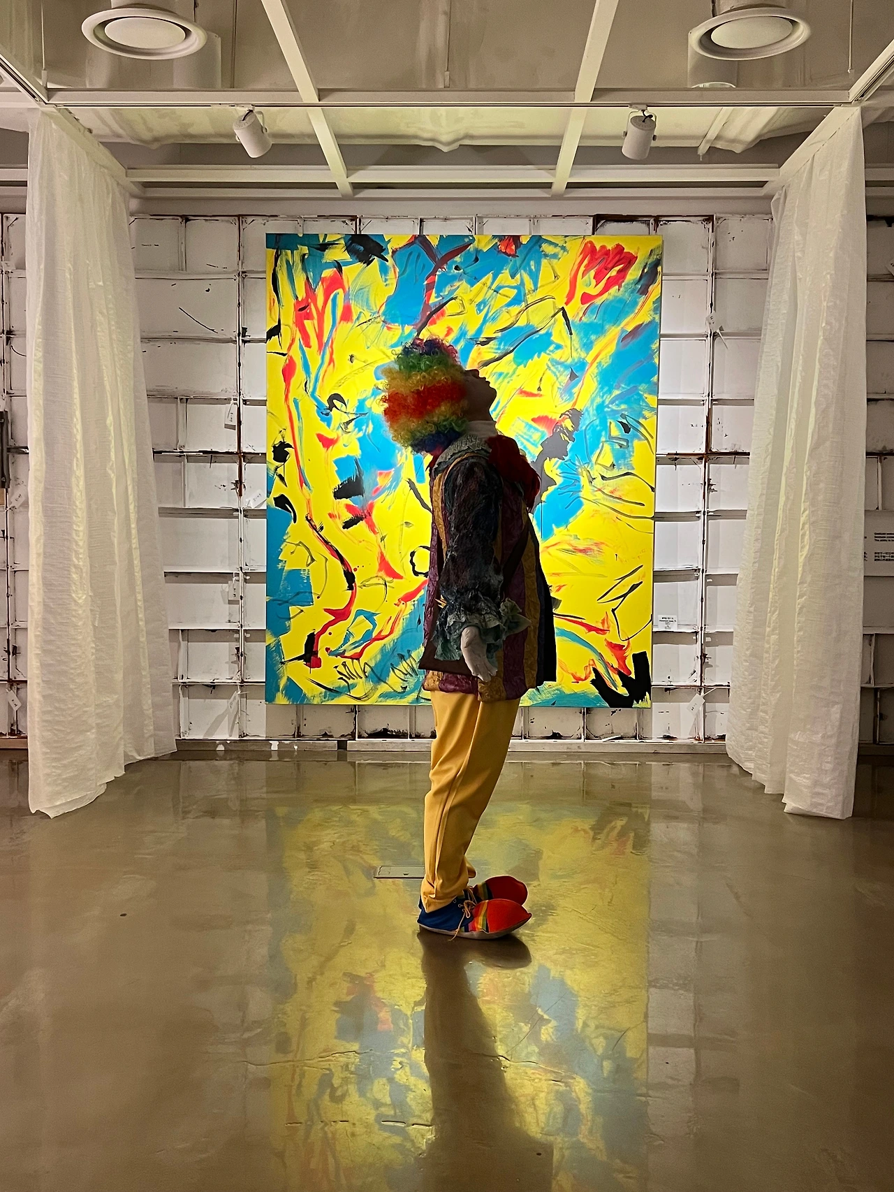 제목에 쓰인 '제4의 벽(Quatrième mur, The fourth wall) '이 무슨 의미일까 궁금했는데, 알고 보니 '연극 밖의 현실 세계와 무대 위에서 전개되는 극 중 세계를 구분하는 가상의 벽'을 이르는 연극 용어였어요. 무대와 관객석을 구분하는 가상의 벽으로, 실재하진 않지만 배우와 관객의 암묵적인 약속으로 만들어진 현실의 벽으로 저는 이해했습니다. 가령 시대극을 공연한다고 할 때, 현재는 2026년이지만, 무대 위는 역사 속 특정 시대나 장소인 거고, 관람객은 그 콘셉트에 동화되어 극 전개를 따라가잖아요. 창작물 속 세계를 존중해야 극 중 수많은 이름과 역할, 배경이 납득되니까요. 반대로 연극 무대에서 관객석으로 말을 걸거나 관람객에게 어떤 행동을 유도하는 건 제4의 벽을 넘나들거나 무너뜨리는 행위인 거죠. 작가는 '제4의 벽'이란 타이틀을 그의 저서와 이전 전시에도 썼는데, 이를 통해 그가 설정한 무대에서 화가, 저자, 연기자를 넘나드는 창작자로서의 그의 정체성을 보여주고, 관람객은 제4의 벽을 통해 보이는 그대로 때론 현재와 호응하며 무대 위 그를 마주하게 됩니다.