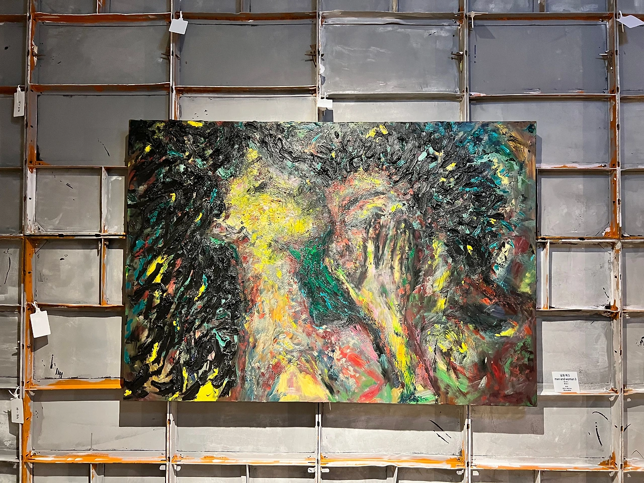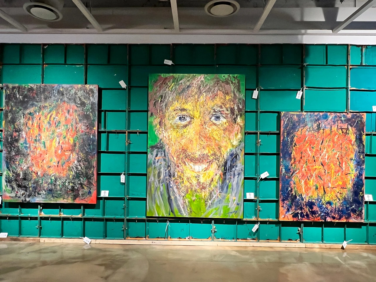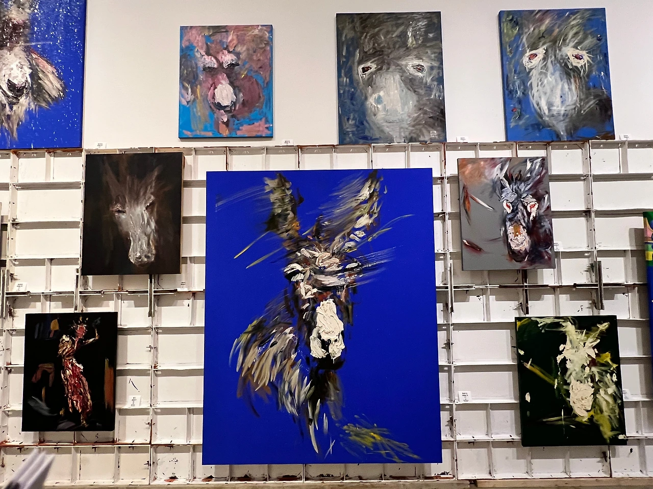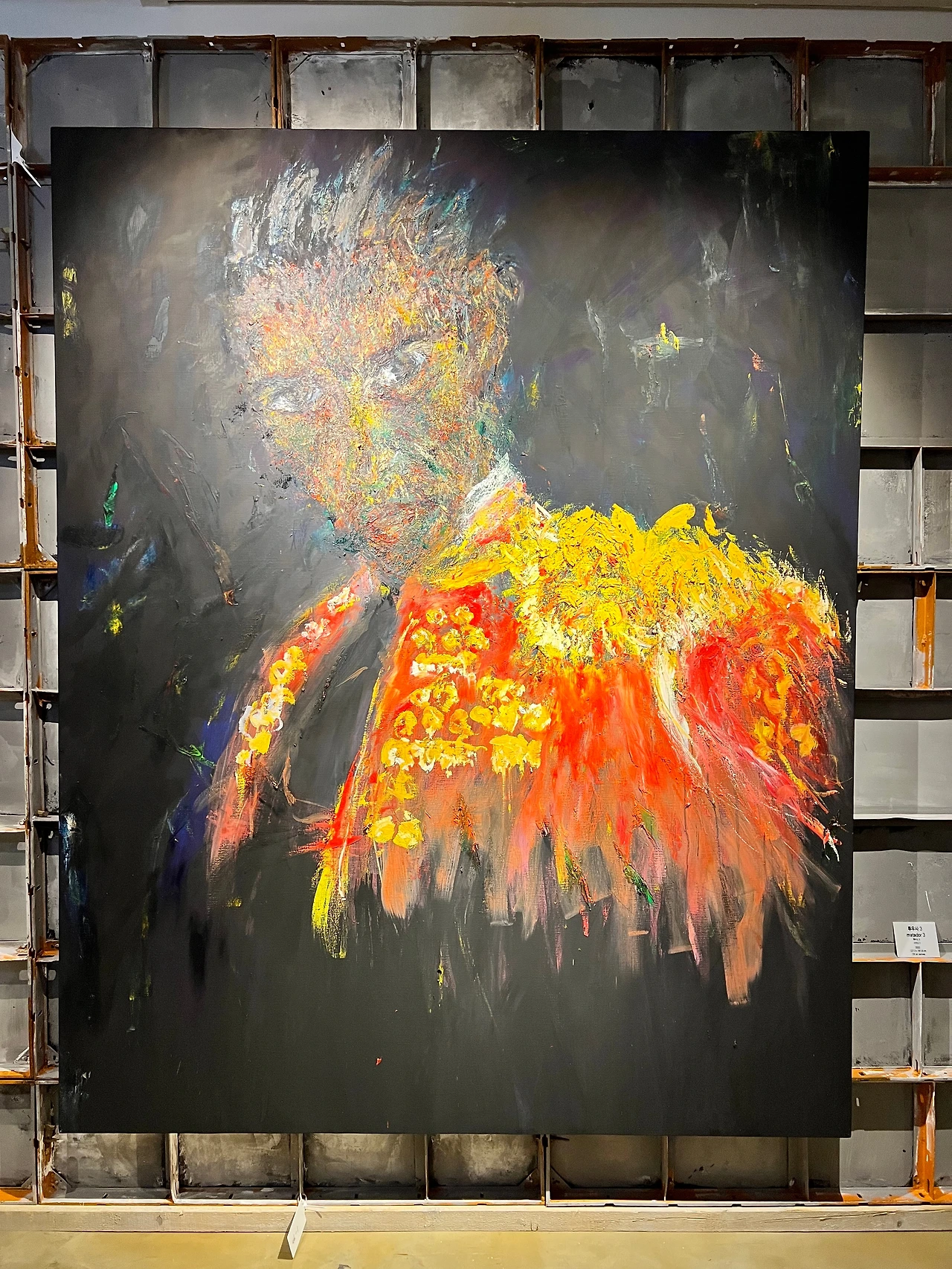 이번 전시에선 10여 년간 그린 작품 150여 점을 선보입니다. 대부분 작품의 캔버스 사이즈가 100호(162.2cm x 130.3cm)가 넘는 대작으로, '사과', '투우사', '당나귀', '자화상', '움직임 연구' '인물' 등의 연작을 볼 수 있습니다. 구상도 있고 추상도 있고 작가의 메모 같은 그림도 있어요. 사조, 화풍, 기법 등의 미술계의 규격을 몰라도 충분히 감각적으로 공감할 수 있습니다.