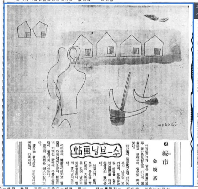 당시 발행된 신문에는 다행히 1935-1940년도에 발표한 김환기 화백의 다른 작품 이미지 기록이 있어 함께 올려드립니다. 초기 화풍을 이해할 수 있는 중요한 자료니 선명하진 않아도 꼼꼼히 봐 두세요~