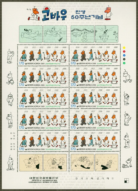 '고바우 영감' 캐릭터는 1950년 12월 30일 육군 본부가 발행한 『사병만화』에 첫 선을 보인 후『만화신문』, 『월간희망』 등 기관지와 잡지 등에 수록되는데요, 폭넓게 알려지기 시작한 건 당시 9만 부를 발행했던 동아일보에 연재되면서부터입니다. 문화면을 담당했던 시인 이상노의 청탁으로 1955년 2월 1일부터 ‘고바우 영감’이 연재됐고 만화를 신문에 게재하는 것에 대해 부정적이었던 언론계에서는 나날이 높아가는 '고바우 영감'의 인기를 실감한 후 잇달아 연재만화를 게재하기 시작하죠. 후에 조선일보, 문화일보를 거쳐 2000년 9월까지 45년간 14,139회를 연재하게 되는데, 이 기록은 최장수 신문 연재 시사만화로 인정되어 한국 기네스(2001)에 등재됩니다.