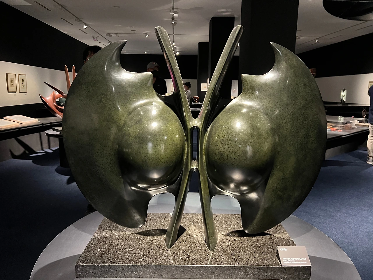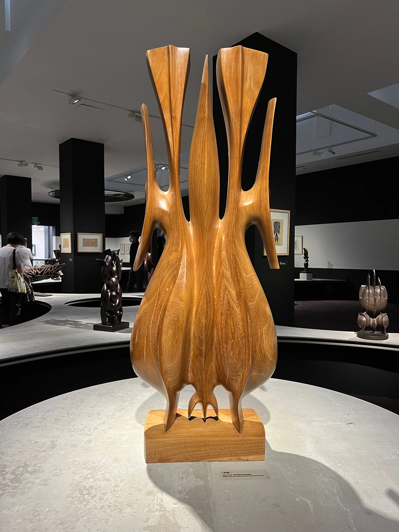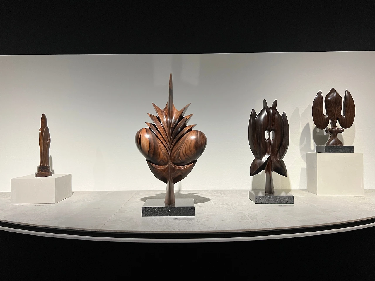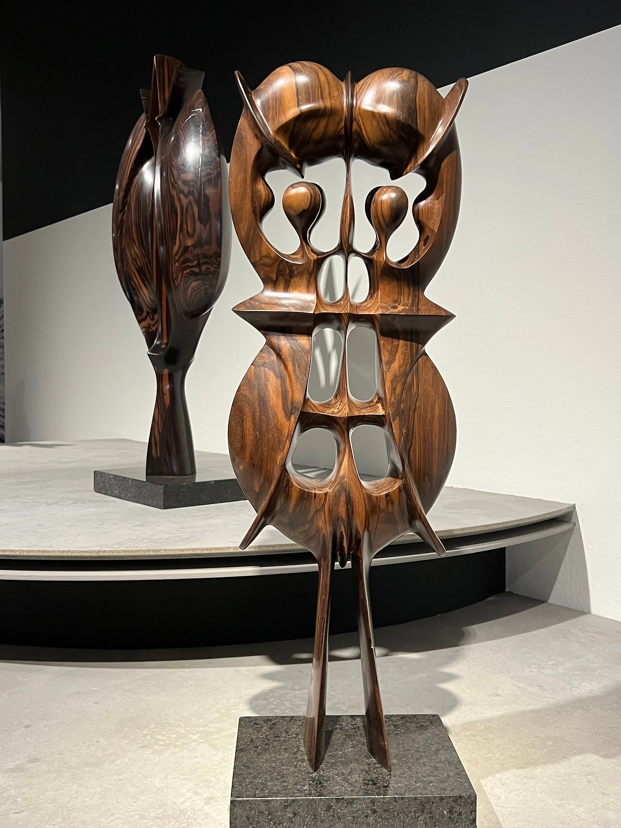 그는 같은 형태의 조각을 다양한 재료를 사용해서 다른 크기로 재제작했는데, 브론즈 제작을 위해 새로운 형태를 고안하기보다 대개 나무나 석고 작품의 형태를 살리고 크기를 다양하게 변화시켰다고 해요. 어떤 재료를 사용하든지 표면을 매끄럽게 연마해 형태가 눈에 잘 들어오게 했고요. 대칭성이 그의 작품에서 보이는 큰 특징이긴 하지만 예외 없이 다 그런 것은 아니었고, 다른 형태, 앞면과 뒷면의 표현이 다른 작품들도 많으니 모든 각도에서 작품을 보셔야 합니다. 이 전시실 대표작으로 꼽히는 <개미(라 후루미)>(1985), <우주를 향하여 3>(1989) , <무제>(1990, 숙대 소장) 도 놓치지 마시고요.