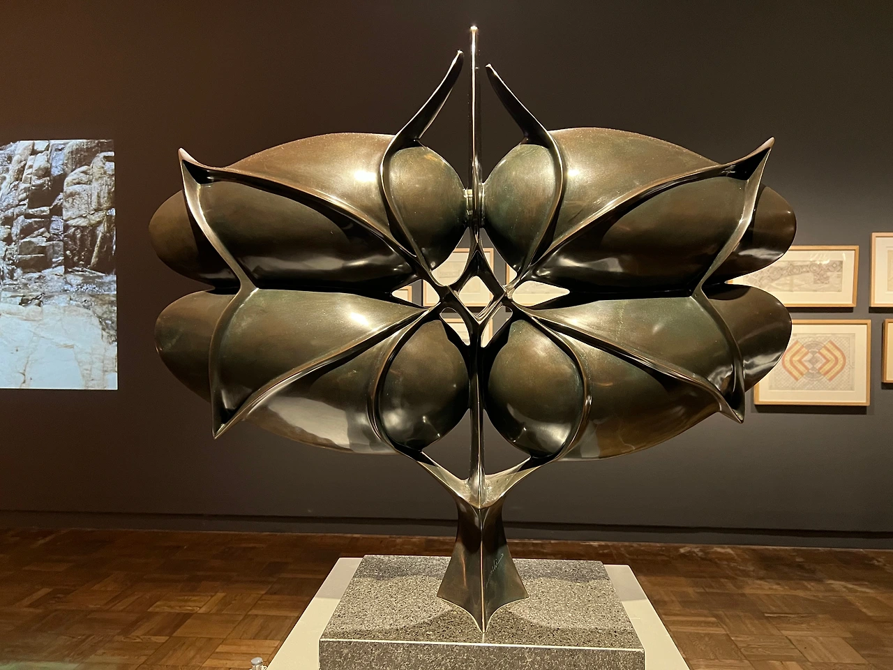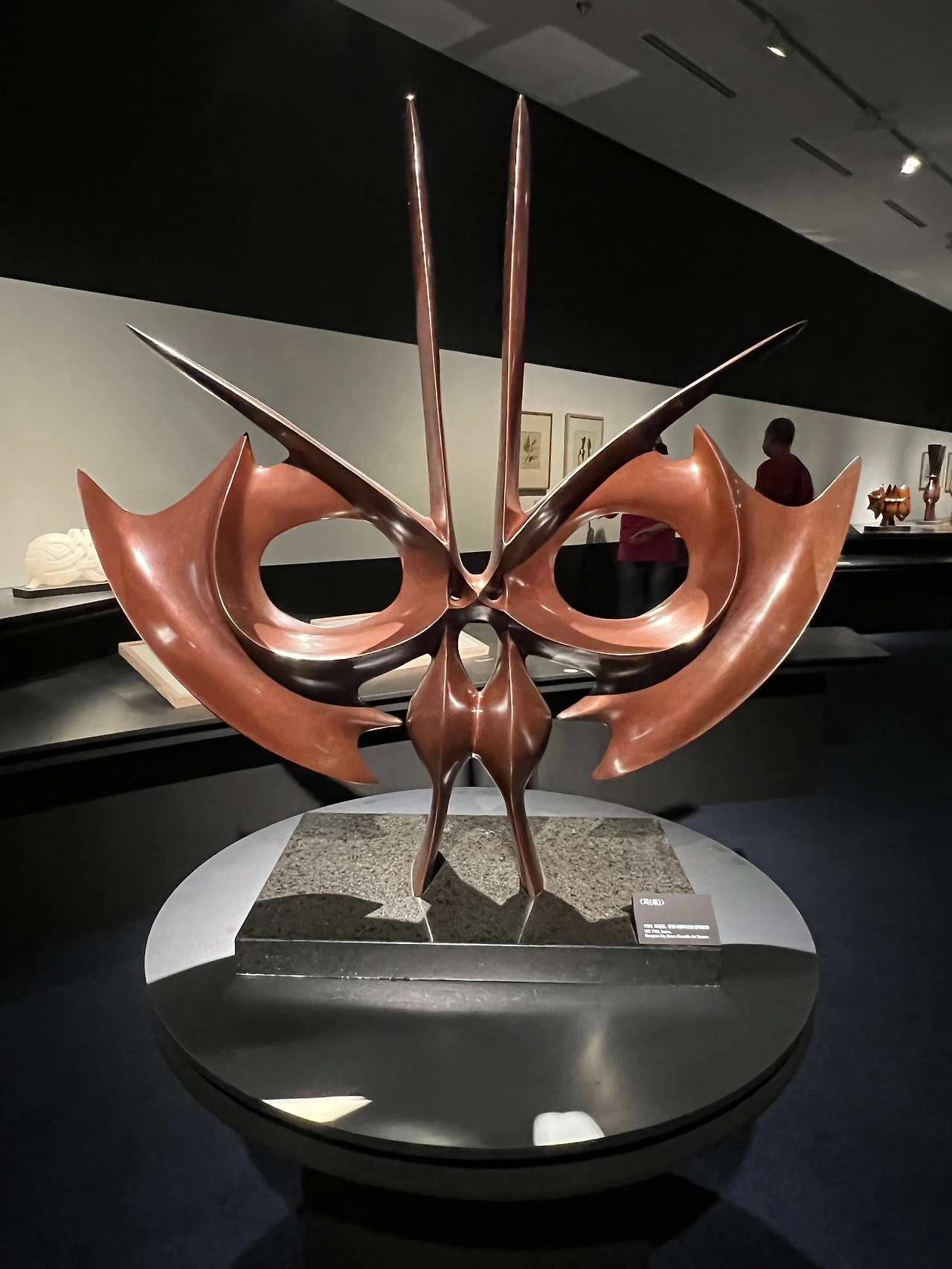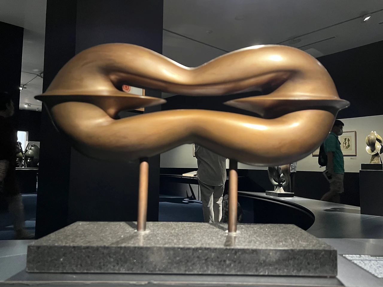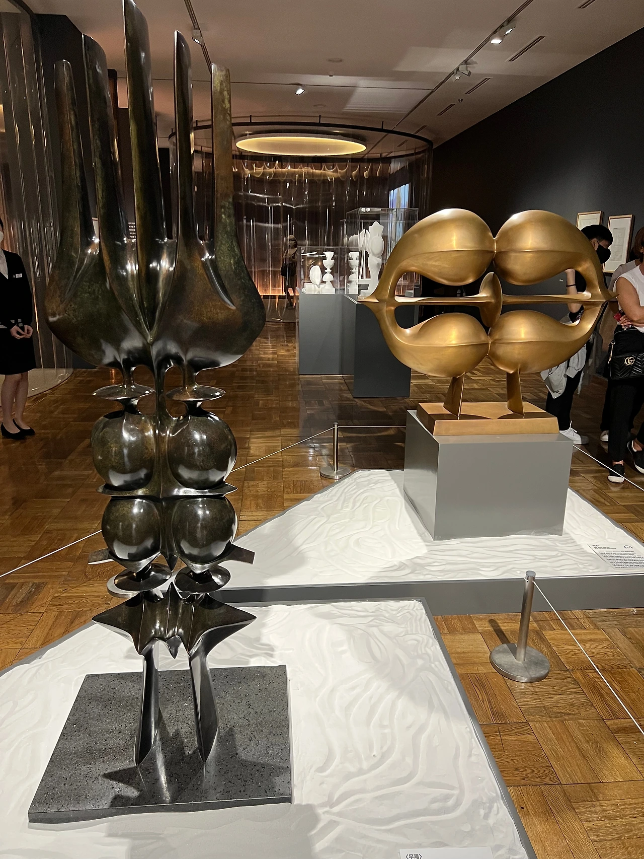 그는 같은 형태의 조각을 다양한 재료를 사용해서 다른 크기로 재제작했는데, 브론즈 제작을 위해 새로운 형태를 고안하기보다 대개 나무나 석고 작품의 형태를 살리고 크기를 다양하게 변화시켰다고 해요. 어떤 재료를 사용하든지 표면을 매끄럽게 연마해 형태가 눈에 잘 들어오게 했고요. 대칭성이 그의 작품에서 보이는 큰 특징이긴 하지만 예외 없이 다 그런 것은 아니었고, 다른 형태, 앞면과 뒷면의 표현이 다른 작품들도 많으니 모든 각도에서 작품을 보셔야 합니다. 이 전시실 대표작으로 꼽히는 <개미(라 후루미)>(1985), <우주를 향하여 3>(1989) , <무제>(1990, 숙대 소장) 도 놓치지 마시고요.