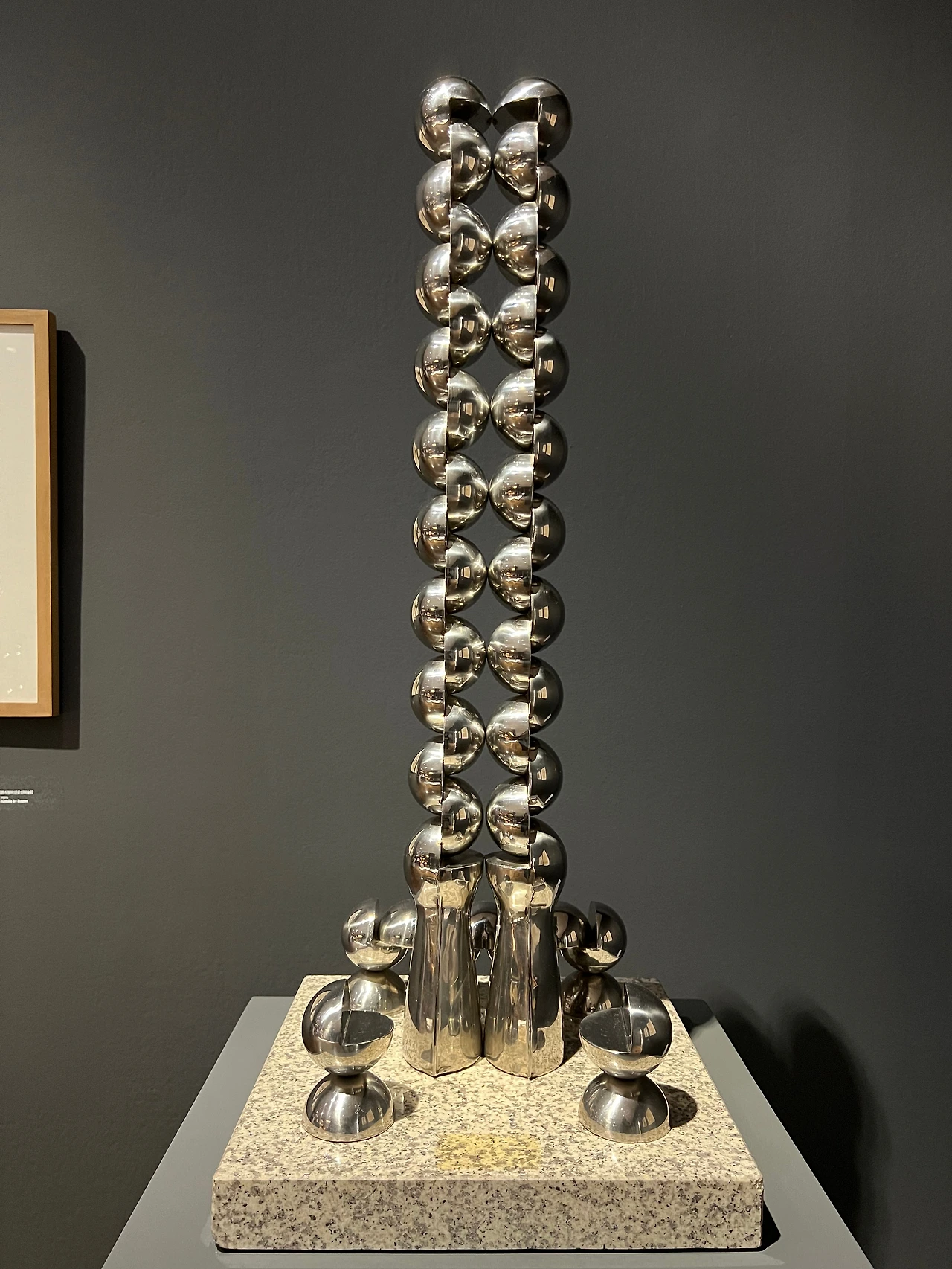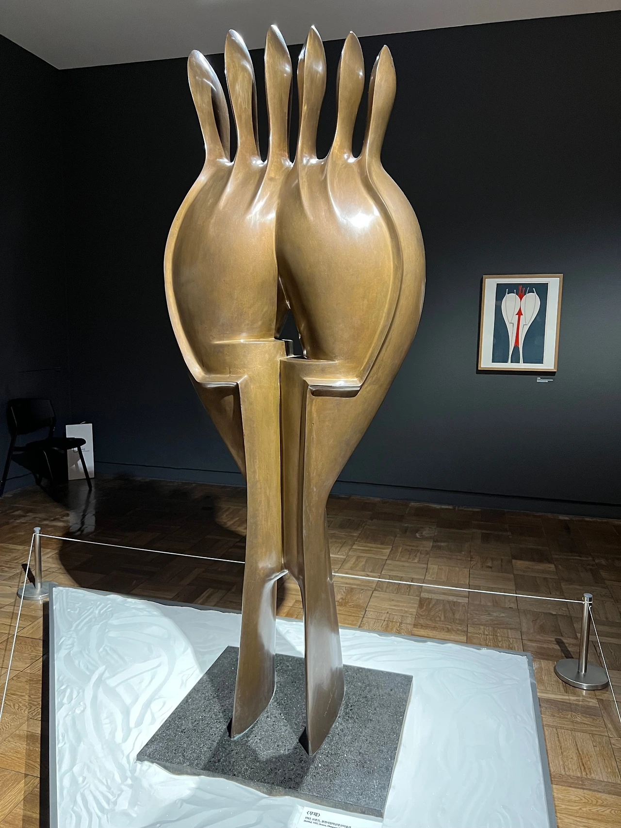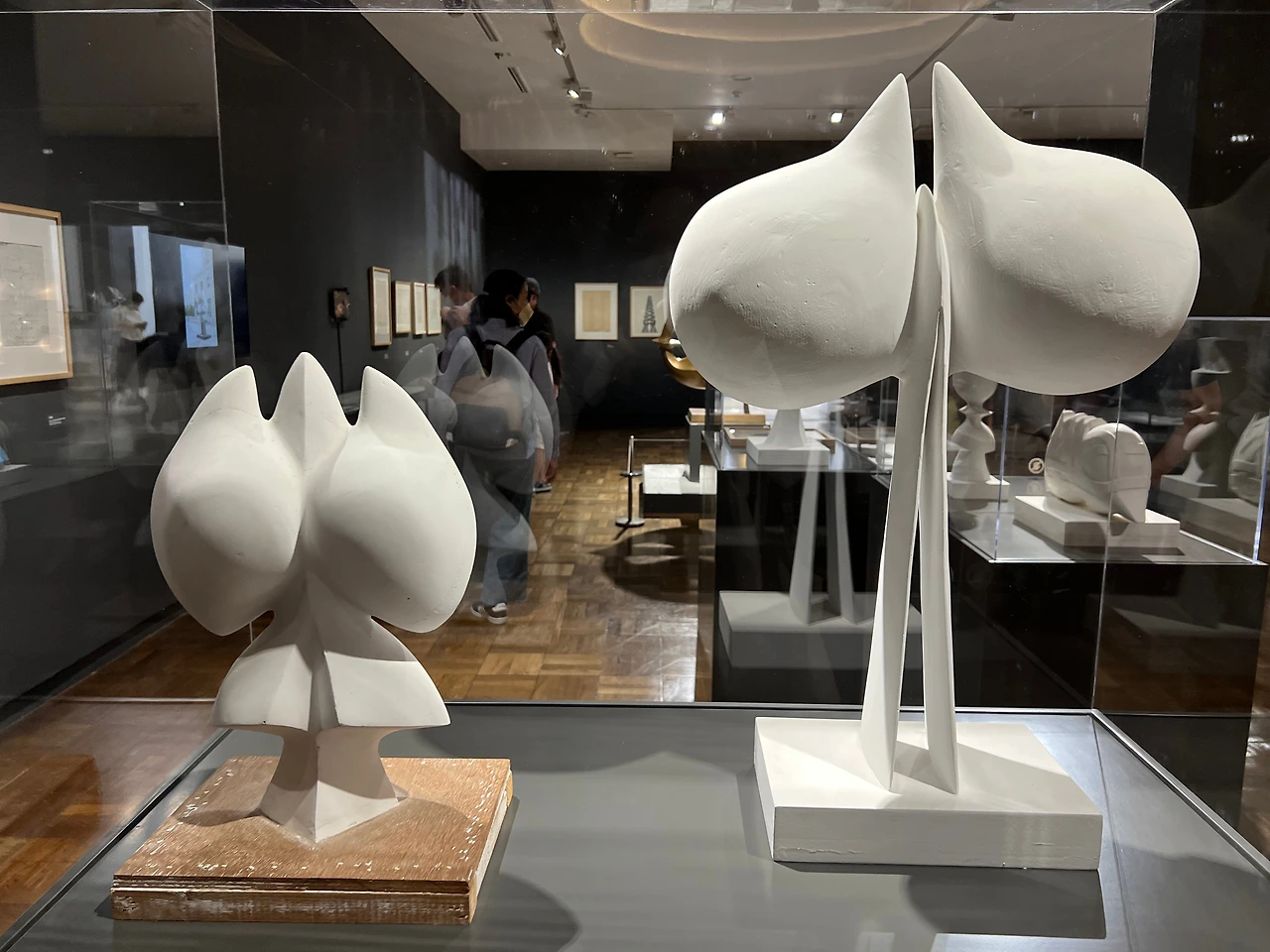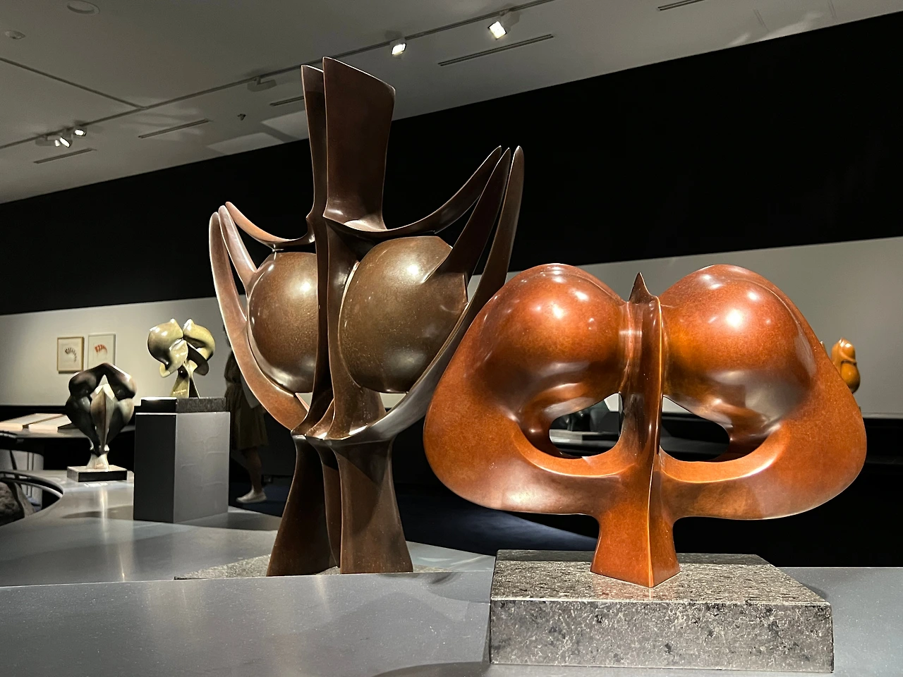 그는 같은 형태의 조각을 다양한 재료를 사용해서 다른 크기로 재제작했는데, 브론즈 제작을 위해 새로운 형태를 고안하기보다 대개 나무나 석고 작품의 형태를 살리고 크기를 다양하게 변화시켰다고 해요. 어떤 재료를 사용하든지 표면을 매끄럽게 연마해 형태가 눈에 잘 들어오게 했고요. 대칭성이 그의 작품에서 보이는 큰 특징이긴 하지만 예외 없이 다 그런 것은 아니었고, 다른 형태, 앞면과 뒷면의 표현이 다른 작품들도 많으니 모든 각도에서 작품을 보셔야 합니다. 이 전시실 대표작으로 꼽히는 <개미(라 후루미)>(1985), <우주를 향하여 3>(1989) , <무제>(1990, 숙대 소장) 도 놓치지 마시고요.