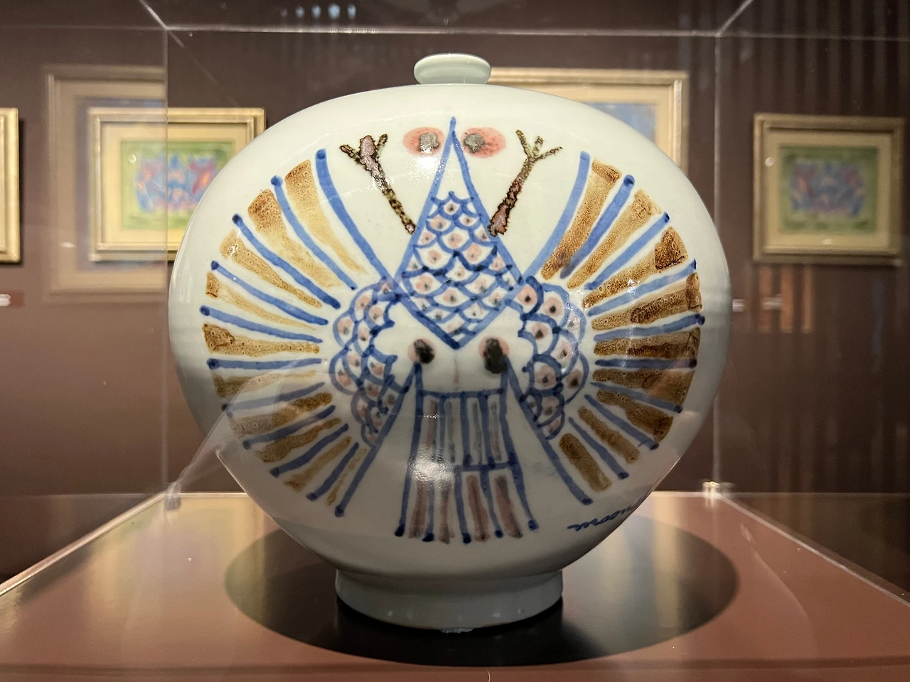 1부 '파노라마 속으로'에서는 그의 회화 작품과 채화 도자들을 선보입니다. 그의 회화 작품을 볼 기회는 거의 없었는데, 그래서인지 이 전시실은 한 번 보고 또 한 번 돌아보고 나올 정도로 자세히 보게 되더라고요. 게다가, 이전 블로그 글에서 소개했던 이건희 특별전 출품작 <닭장> 포함, 구상에서 추상회화로 이어지는 그의 화풍의 변화를 실제 작품으로 직접 볼 수 있어 좋습니다.