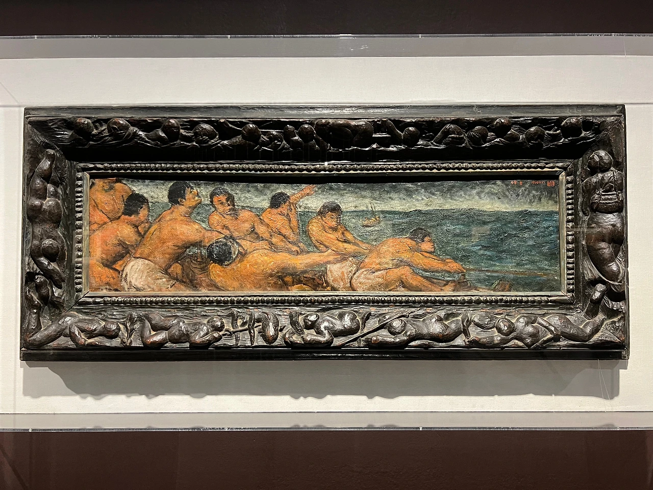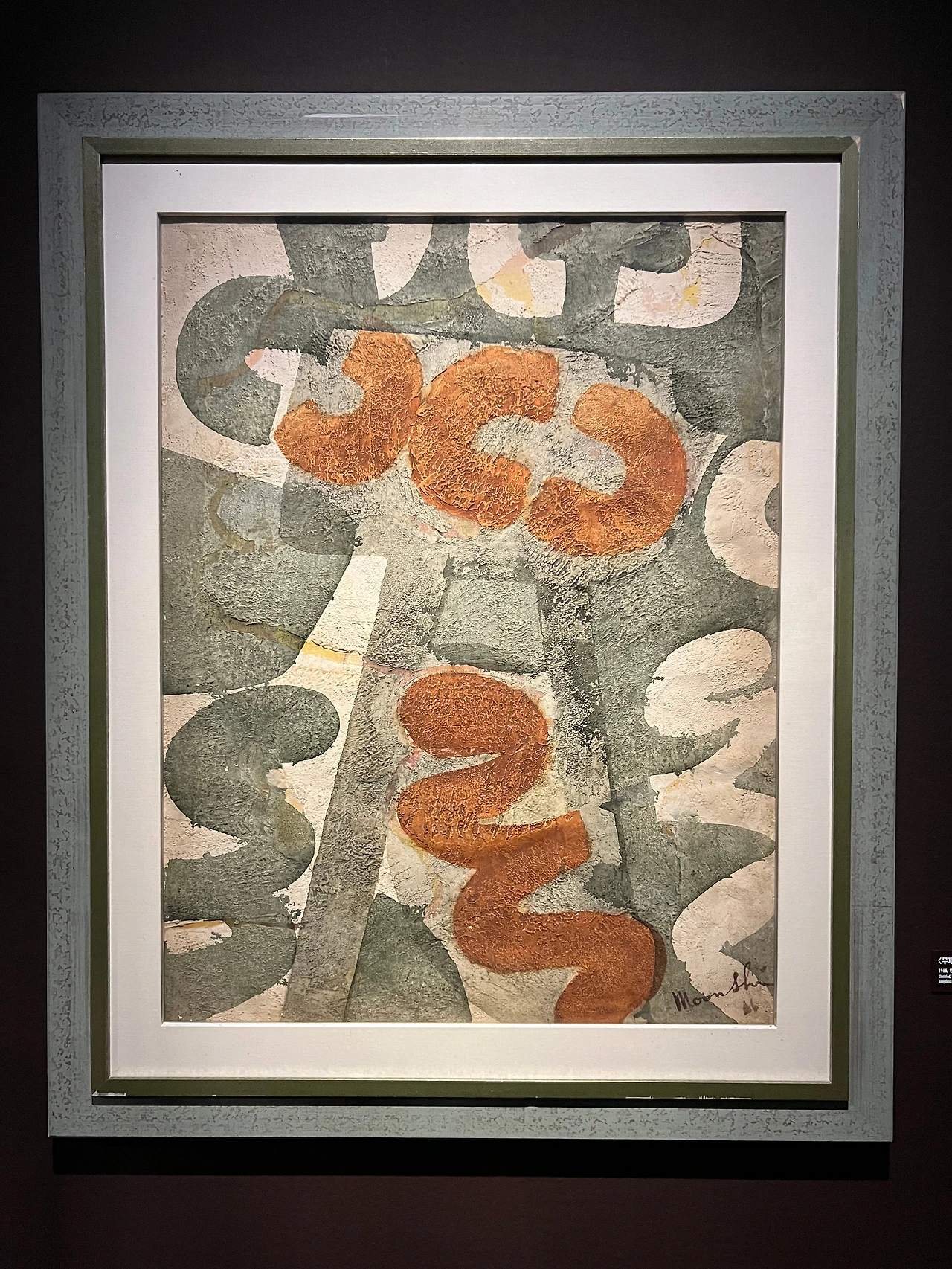 전시 해설에 따르면, 그는 1938년 밀항하여 일본으로 건너가 이듬해 일본 미술학교 양화과에 입학합니다. 일본 각지에서 모인 청년 예술가들이 각자의 정체성을 유지하며 교류하고 작업했던 도쿄(東京) 이케부쿠로(池袋) 시나마치(椎名町) 예술인촌에 거주하면서 화가로서 갖춰야 할 기본 소양을 다졌다고 하죠. 광복과 함께 귀국한 그는 마산 추산동 언덕(現 창원시립마산문신미술관 위치)에 터를 잡고 부산, 대구, 서울 등을 오가며 작품 활동을 활발하게 했는데, “화면의 기교를 위한 낭만”보다 “현실 생활의 체험”을 중시해 마산의 풍경과 주변 사람들의 평범하고 소박하고 거친 삶, 그리고 향토성 짙은 정물을 화폭에 담습니다. 1957년, 反 아카데미즘을 내세운 모던아트협회에 참여하면서 본격적으로 서울을 활동 공간으로 삼았고, 고층 건물과 가로수가 즐비한 도시 풍경을 그리는데 이 변화를 보여주는 작품들도 1부 전시장에서 만날 수 있습니다. 또 1961년 프랑스로 건너간 이후 받은 앵포르멜(Informel)과 누보 레알리즘(Nouveau Réalisme) 등의 영향, 생계를 위해 파리 북쪽에 위치한 라브넬(Ravenel)에서 고성(古城)을 수리하며 체득한 감각이 깃든 작품들도 있고요. 특히, 20대 초반의 자신을 중년의 거장처럼 묘사한 <자화상>(1943), 1회 개인전 출품작이자 캔버스와 캔버스 틀, 붓과 액자까지 손수 제작해 그린 <고기잡이>(1948), 어미소와 송아지를 밀착시켜 반추상으로 표현한 <소>(1957)는 이 전시실의 대표 작품으로 꼽히니 꼭 자세히 봐 두세요.