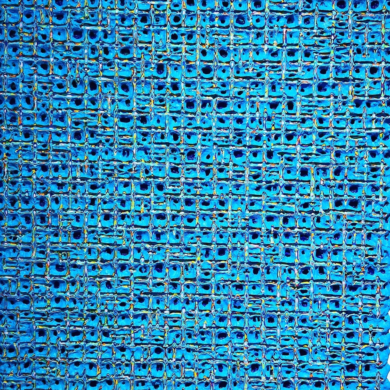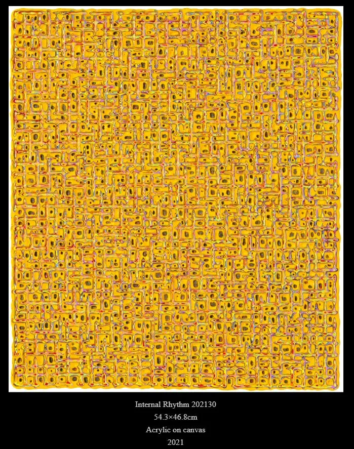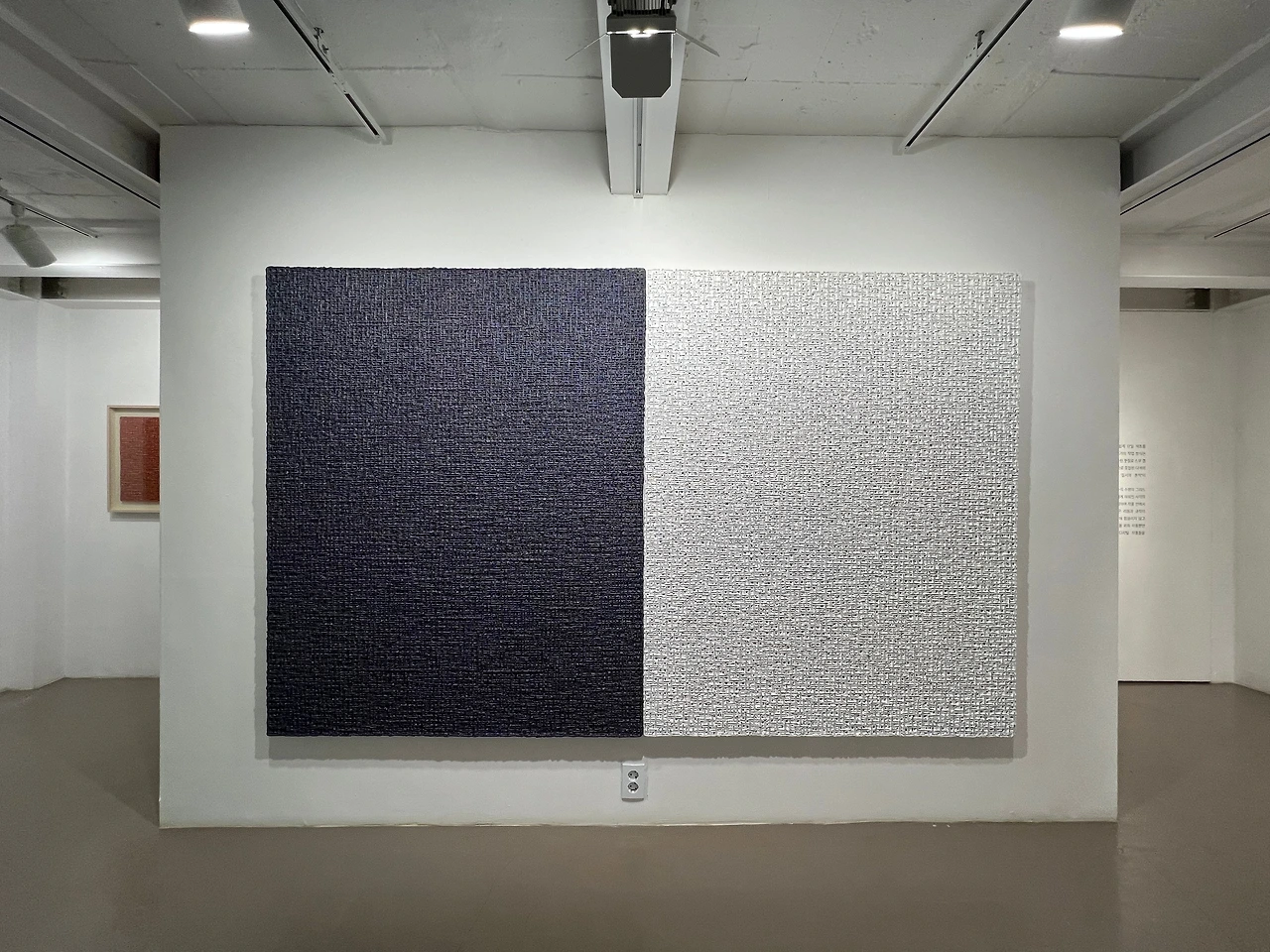 물감층에 숨어 있던 색점들이 살아나 안의 리듬과 밖의 구조가 동시에 이루어진다.