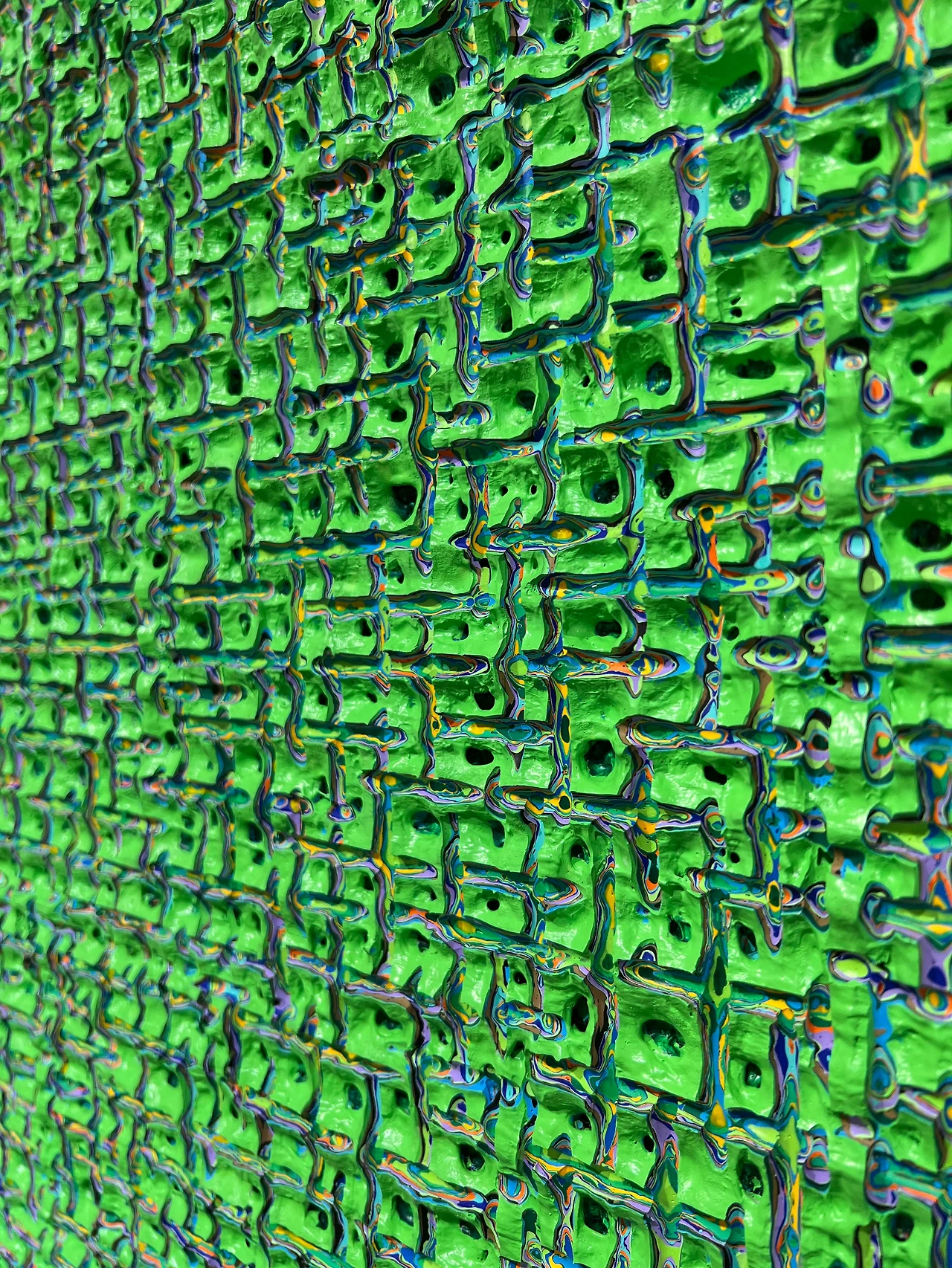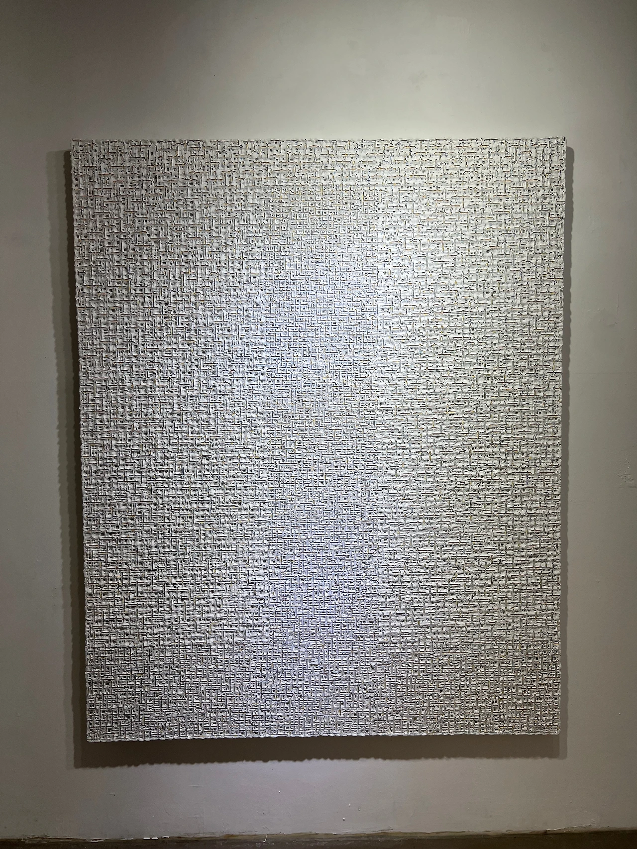 그리고 씨줄과 날줄이 일정한 그리드로 이루어진 요철의 부조 그림이다.