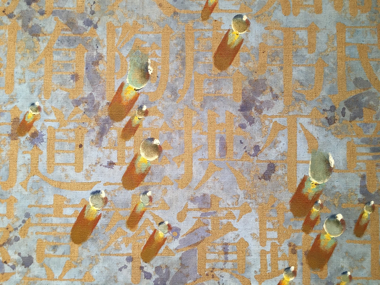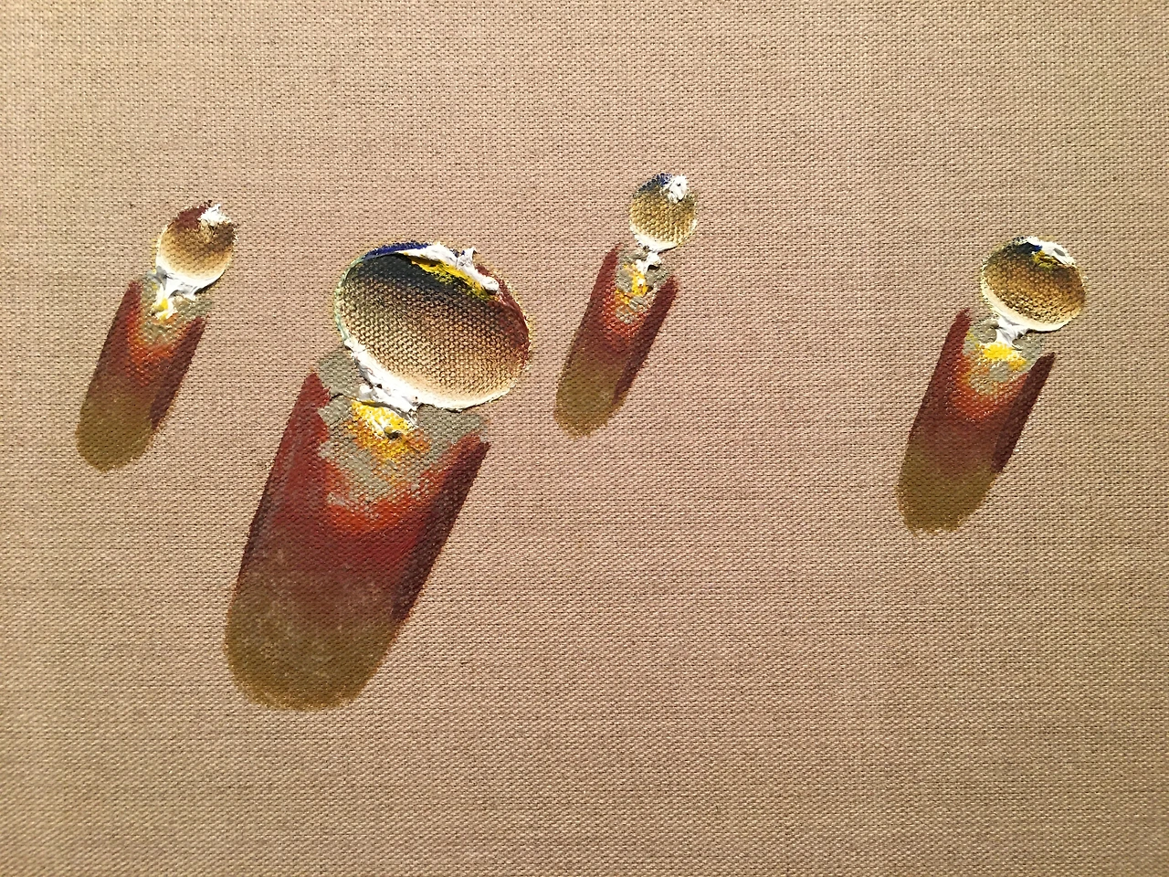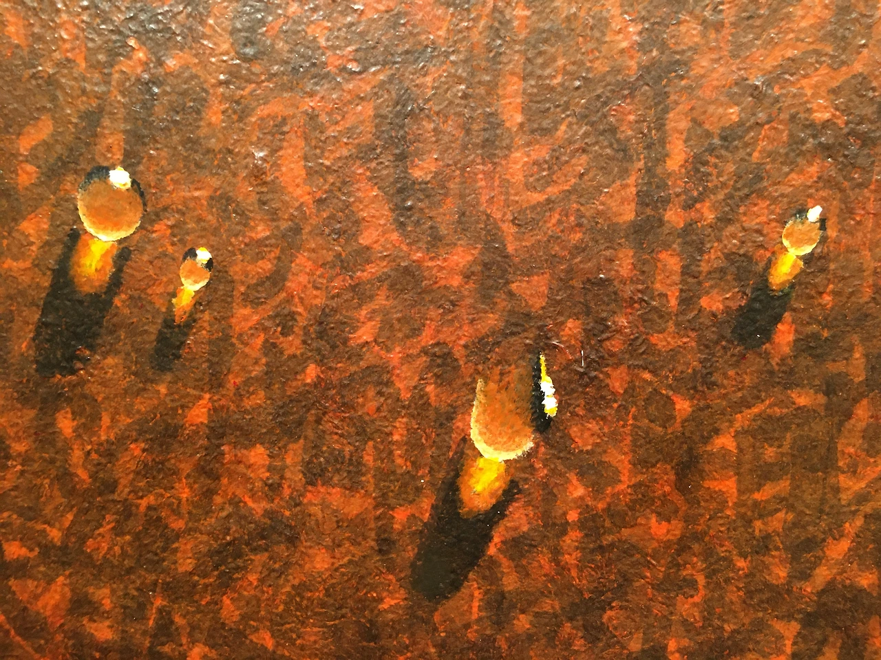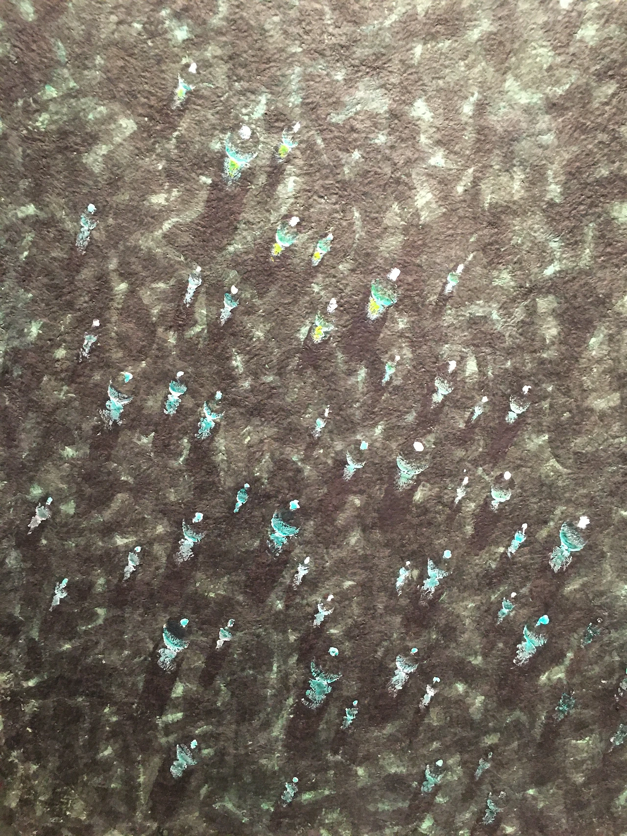 선을 따라 일정한 호흡과 질서로 물감을 붓으로 쳐서 쌓아 간다.