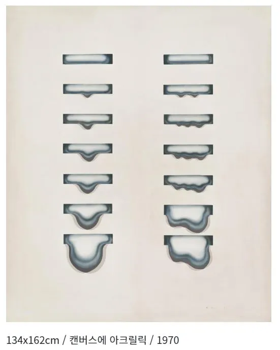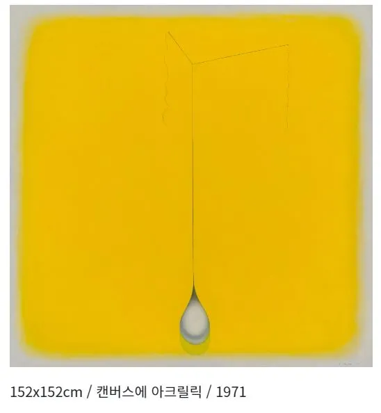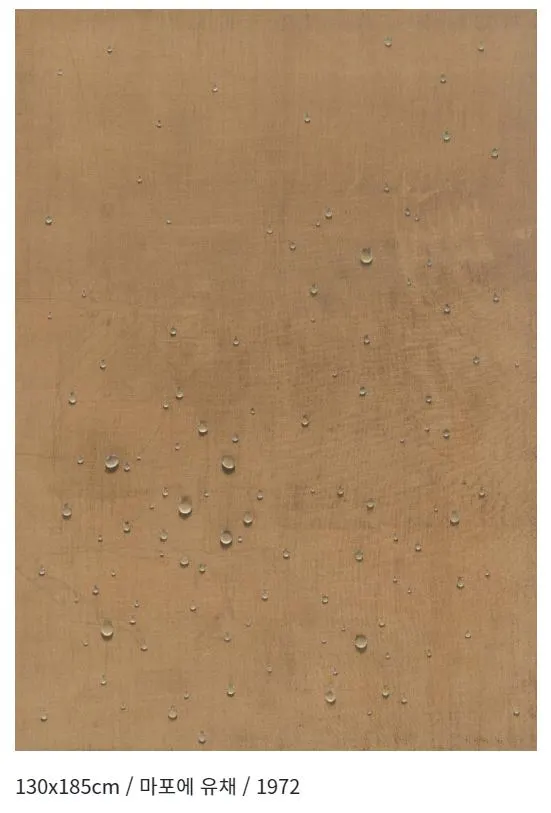 한국에서는 1976년 갤러리현대 개인전을 통해 처음으로 물방울 회화가 소개됩니다. 한 인터뷰에서 "초기 물방울 회화에서 물방울은 전쟁으로 인한 작가의 상실감과 정신적 고통을 극복하는 정화와 치유의 수단이었다"라고 밝혔는데, 다큐 《물방울을 그리는 남자》에도 이 부분은 잘 드러납니다. 1976년 첫 전시 이후 2013년까지 12회에 걸쳐 갤러리 현대에서만 개인전을 열었고, 마지막 개인전이 된 2020년 전시도 갤러리현대에서 <The Path>라는 제목으로 열렸어요. 저도 이 전시를 봤는데, 그게 유작전이 될 거라고는 전혀 예상치 못했죠.