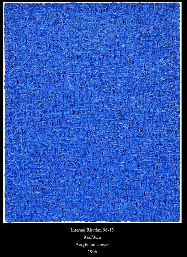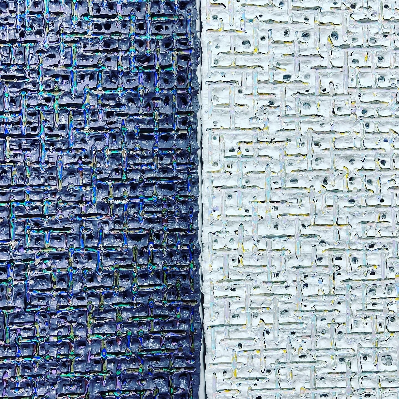 '내재율'은 아크릴 물감을 가로, 세로로 여러 차례 발라 두껍게 쌓은 뒤 물감층을 깎아 내는 방식으로 만듭니다. 스무 번 넘게 물감층을 쌓고 안료가 어느 정도 굳으면 일정한 간격으로 칼로 긁어내는 작업이죠. 작품은 시각적 편안함을 주는 수평, 수직 구조를 활용하는데, 세로로 칠하고 다시 캔버스를 돌려 이전 물감 선과 수직이 되도록 선을 칠했다고 해요. 칼로 긁어낸 곳은 표면의 단일한 색 밑으로 중첩된 다색의 색층이 드러나는데, 이때 켜켜이 쌓인 물감들이 표면으로 드러나며 묘한 리듬과 규칙을 만들어냅니다. 그게 바로 내재율이죠. 바르고 긁어내는 단순한 행위지만 여기에 작가 정신이 더해져, 수공예적인 시간과 집중이 돋보이는 작품입니다. 각도에 따라 다르고 조명에 따라, 배경에 따라 다르게 보이는 작품이라 대부분의 추상작품들이 그렇듯, 관찰자의 다양한 시선을 한 작품 속에 녹일 수 있어요. 2000년대부터 조명받기 시작한 이 시리즈는 현재도 100호가 억대에 거래되는데, 더 이상의 신작은 없을 테니 가격은 좀 더 요동치겠죠.