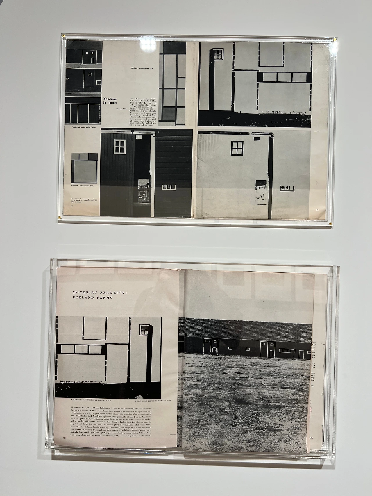 두 번째 섹션인 ‘흑백의 몬드리안’에선 카메라로 촬영한 첫 야외 사진 작업을 선보입니다. 클라인은 1952년 네덜란드의 발헤렌 섬을 방문하는데, 이 섬은 추상미술 거장 피에트 몬드리안(1872-1944)이 자주 방문한 장소였다고 해요. 이곳에 머물면서 몬드리안의 작품을 연상시키는 이미지를 마주하게 되는데, 그 이미지를 촬영한 후 자신만의 해석을 더한 작품이 〈Mondrain Barns〉연작이죠.