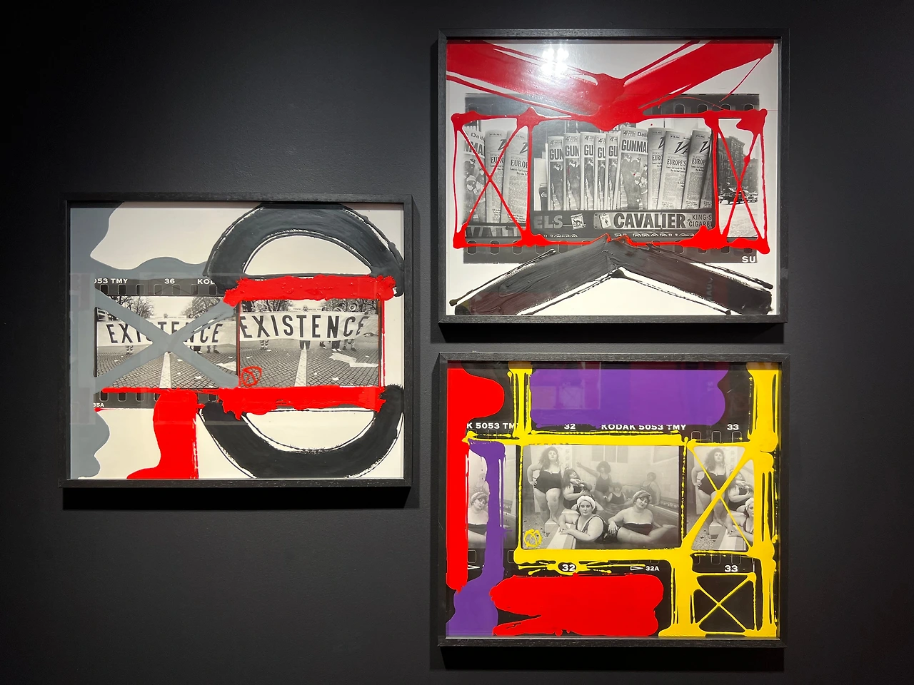 일곱 번째 섹션인 '페인티드 콘택트'에선 회화와 영화, 사진을 모두 유기적으로 결합한 연작 <페인티드 콘택트 painted contacts>를 소개합니다. 사진가들은 하나의 필름으로 찍은 모든 사진을 한 장에 보여주는 밀착 인화지(콘택트 시트)를 보고 빨간색 유성펜으로 O나 X를 적어 뽑을 사진을 표시하는데, 클라인은 이런 관례를 차용해 3장의 사진을 하나로 묶고 그 위에 선을 그려 하나의 장면으로 만들었죠. 회화와 영화, 사진이 하나로 결합되기도 해, 다양한 분야를 넘나들었던 그의 예술성을 종합적으로 보여주는 작품입니다.