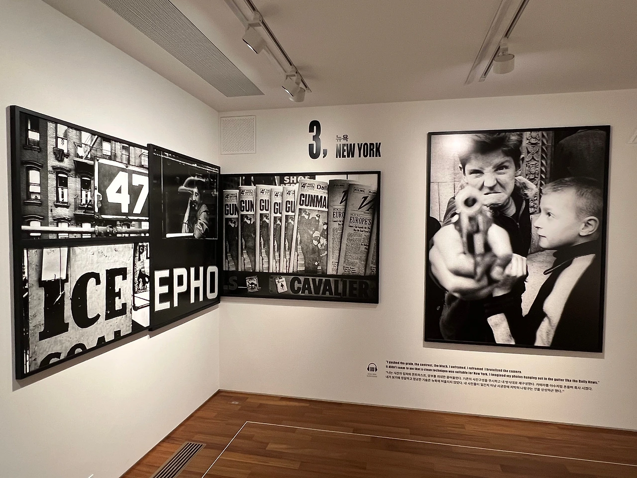 오늘 소개할 전시는, 뮤지엄한미 삼청에서 진행 중인 《윌리엄 클라인 - DEAR FOLKS,》입니다. 뮤지엄한미는 가현문화재단이 개관한 국내 최초 사진 전문미술관인 한미사진미술관의 새 이름입니다. 원 소재지인 방이동과 새로 개관한 삼청 본관 및 별관을 구분하기 위해 '뮤지엄한미 삼청', '뮤지엄한미 방이'로 부르죠. 뮤지엄한미는 2003년 개관 이래로 쭉 전시、소장품 수집、작가 지원、출판 및 교육사업 등을 진행 중이고, 2009년 한국사진문화연구소를 설립해 사진 도입 초기부터 1900년대의 자료수집과 연구도 지속하고 있습니다. 2012년엔 한미사진아카데미도 개원해 사진예술 대중화에도 기여하고 있으니, '사진에 관한 모든 것'을 하고 있는 곳으로 기억해 둘 만하죠.